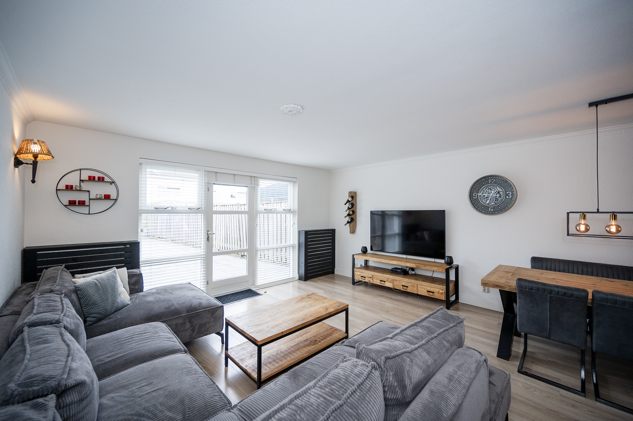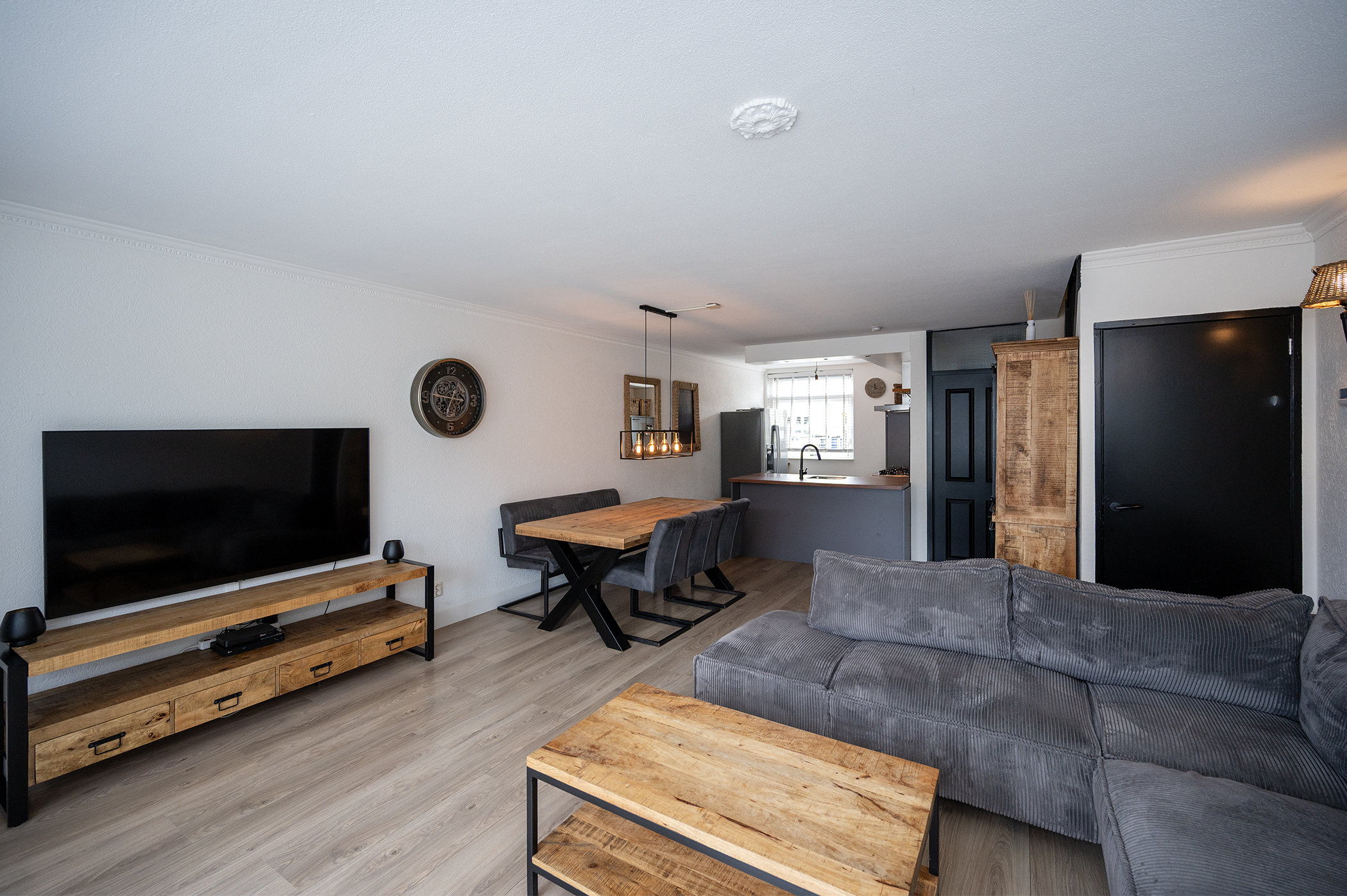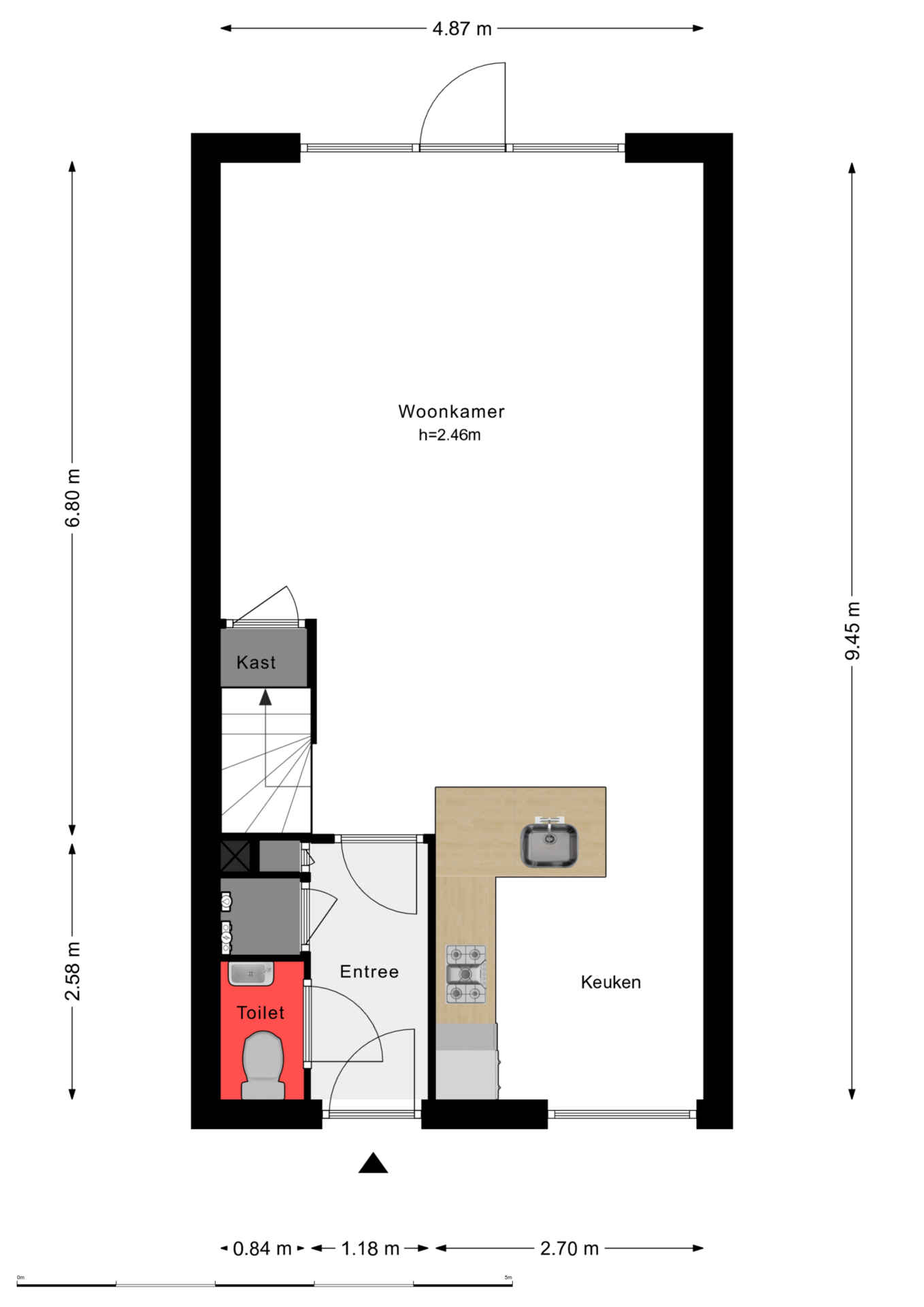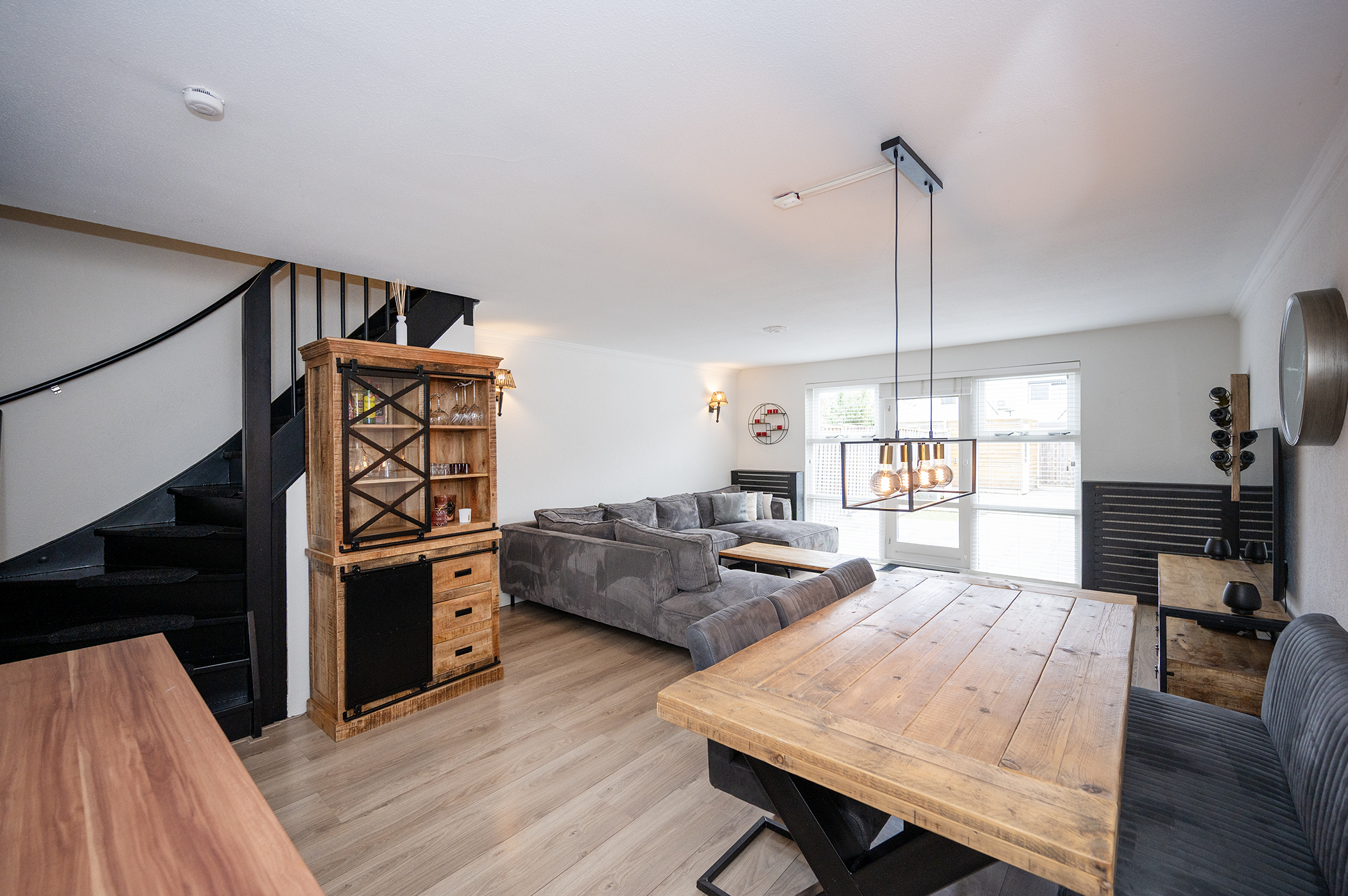 Via de entree betreedt u de woning, waar zich tevens de meterkast, toilet met fonteintje, trapopgang naar de eerste verdieping en de toegang tot de woonkamer zich bevindt. De ruime, tuingerichte woonkamer kenmerkt zich door een prettige lichtinval dankzij de grote raampartij aan de achterzijde van de woning. De directe verbinding met de achtertuin, middels een loopdeur, zorgt voor een aangename overgang tussen binnen- en buitenruimte. De indeling van de woonkamer biedt voldoende mogelijkheden voor het creëren van een comfortabele zit- en eethoek. De keuken is functioneel ingericht en voorzien van diverse apparatuur, waaronder een gaskookplaat, een afzuigkap, een vaatwasser, een oven en een koel-vriescombinatie. Hiermee is de keuken van de nodige gemakken voorzien en geschikt voor dagelijks gebruik.