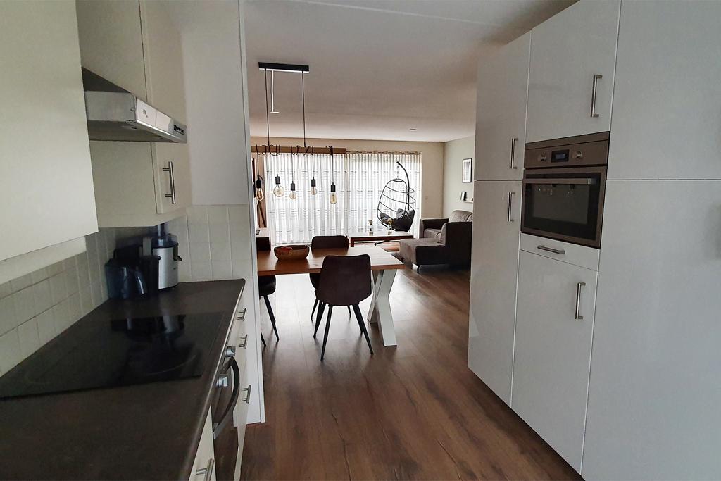 Via de ruime voortuin bereikt u de entree. Binnenkomst in de hal met toegang tot de meterkast, toilet, trapopgang en de woonkamer. De lichte woonkamer is tuingericht en beschikt over een opbergkast onder de trap. Op de begane grond ligt een nette laminaat vloer. De keuken is aan de voorzijde gerealiseerd en beschikt over veel kastruimte en een groot werkblad. Tevens is de keuken voorzien van divers inbouw apparatuur zoals een inductie kookplaat, hete lucht oven, combi-magnetron, koel – vriescombinatie en een vaatwasser.