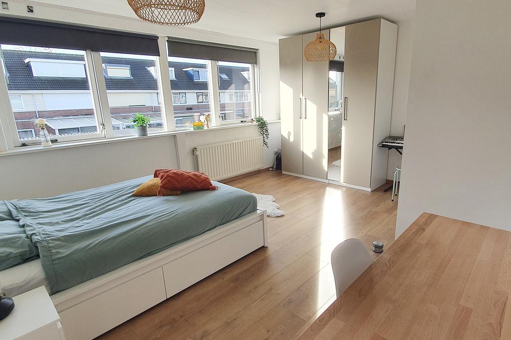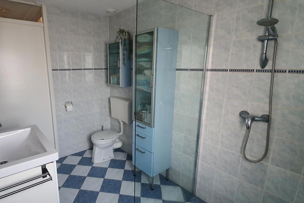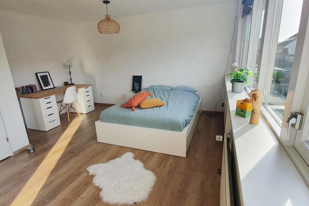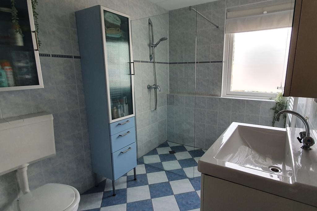 Overloop met toegang tot de twee slaapkamers en de badkamer. Aan de achterzijde van de woning bevindt zich de grootste slaapkamer, deze is recentelijk (2020) gecreëerd (voorheen 2 kleine kamers) en voorzien van laminaat. Aan de straatzijde bevindt zich de tweede slaapkamer welke ruim genoeg is voor het plaatsen van zowel een tweepersoonsbed als een grote garderobekast. De badkamer is volledig betegeld en daardoor makkelijk te onderhouden. De inloopdouche is ruim en voorzien van een nieuwe douchewand. Ook treft u hier het tweede toilet en een ruime wastafel met bergruimte zowel onder de wasbak als in de spiegel maakt de ruimte compleet.