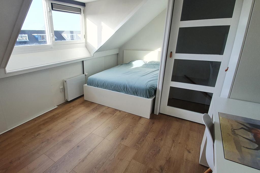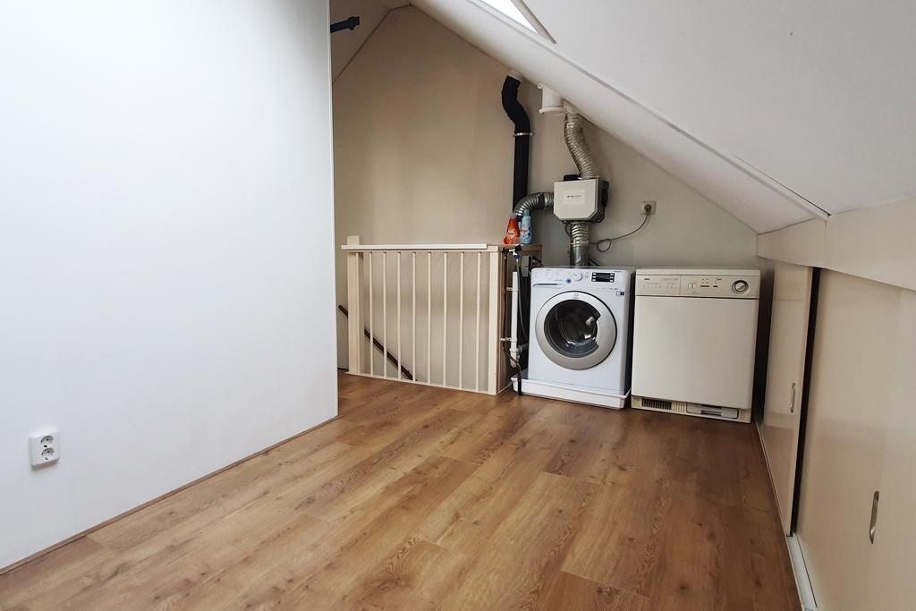 Door het plaatsen van een dakkapel (2020) heeft u op zolder een derde slaapkamer voorzien van laminaat. De andere kant is volledig benut door een op maatgemaakte kast, met aan de trapzijde ruimte voor de wasmachine en droger. Achter de knieschotten heeft u veel bergruimte waar u uw spullen uit het zicht kunt opbergen.