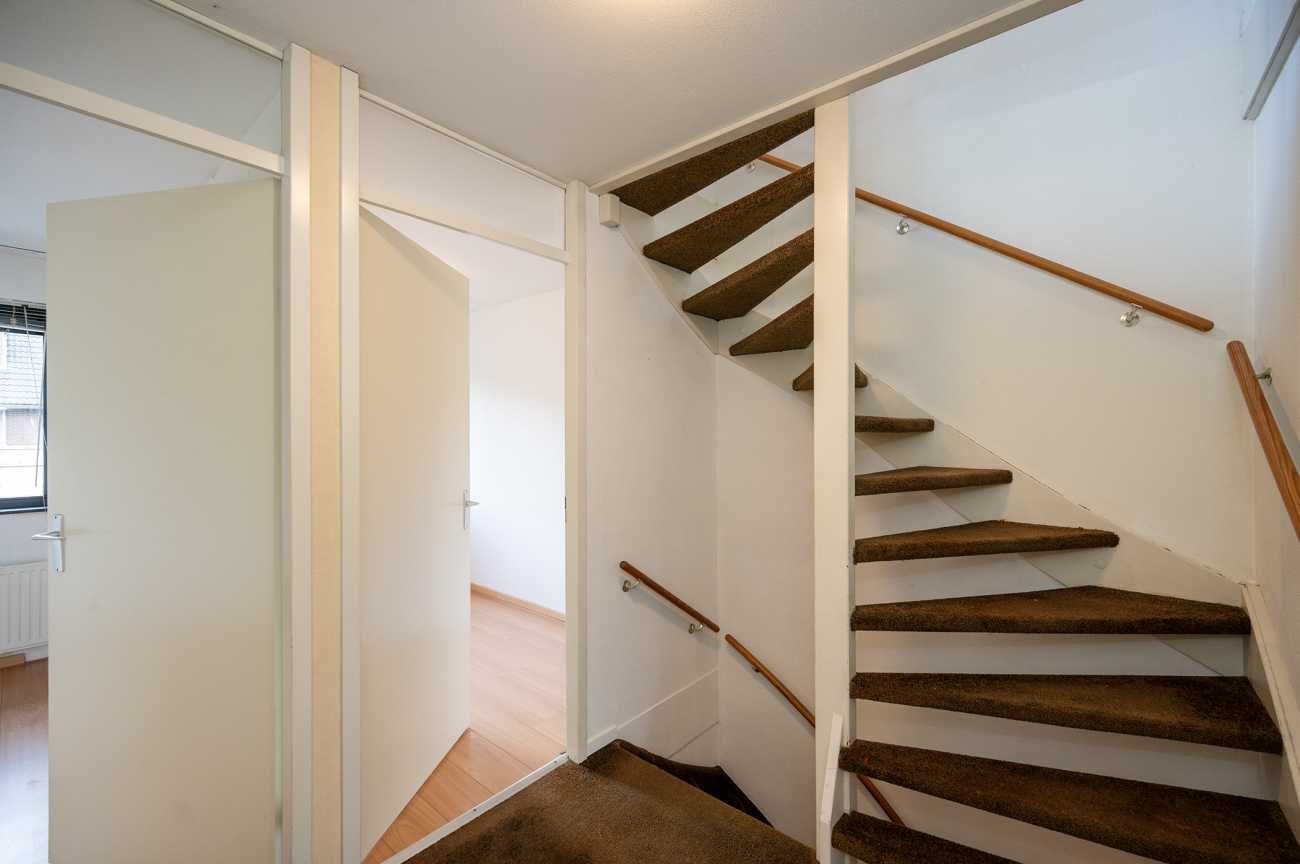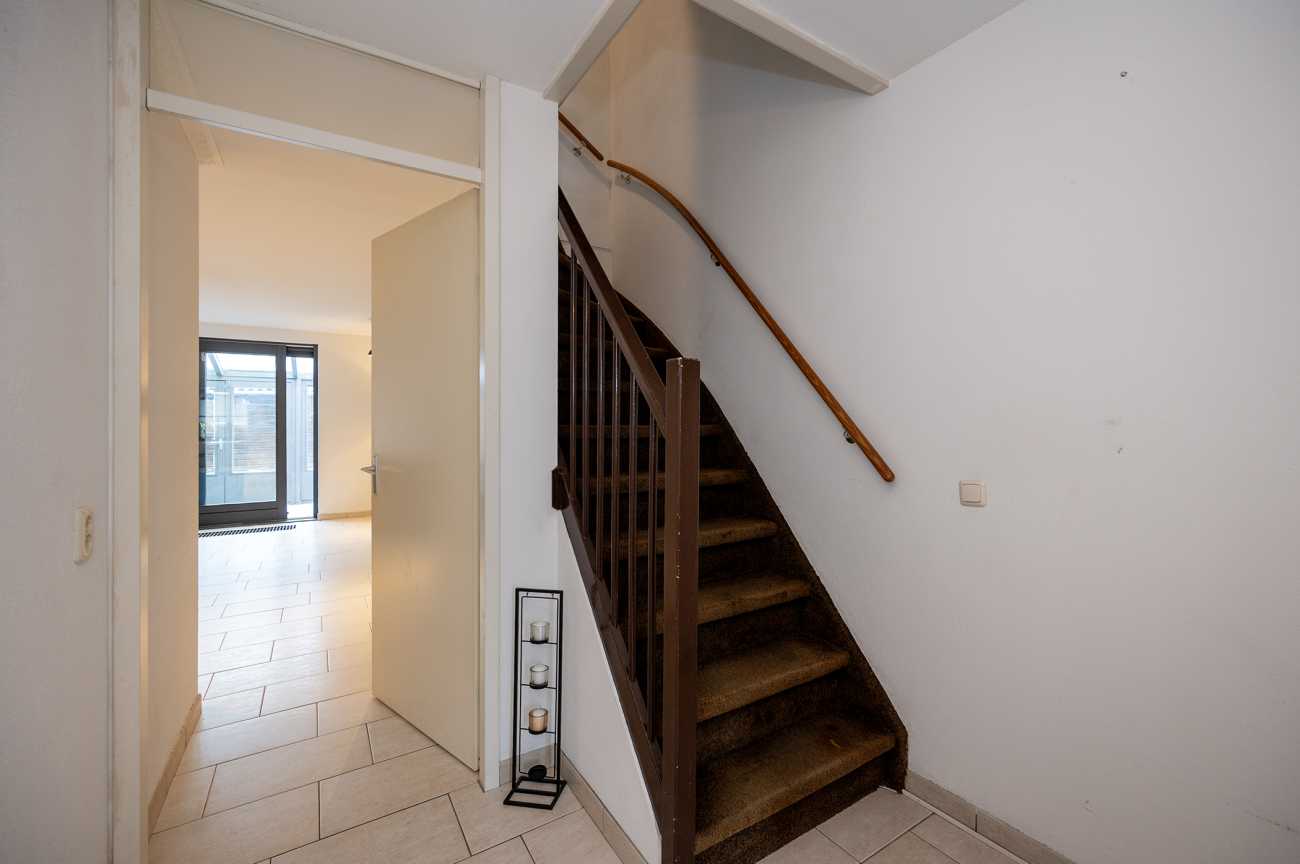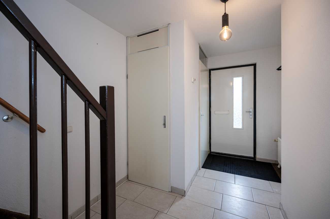 Entree met hal, meterkast, toilet en trapopgang naar de eerste verdieping. Vanuit de hal bereikt u de riante woonkamer, die is voorzien van een uitbouw in de vorm van een serre, waardoor extra ruimte is gecreëerd. De keuken is uitgerust met diverse inbouwapparatuur, waaronder een oven, keramische kookplaat, koel-vriescombinatie, afzuigkap en vaatwasser. Daarnaast beschikt de keuken over een praktische carrouselkast en meerdere lades met soft-close mechanisme, wat bijdraagt aan optimaal gebruiksgemak en efficiënte bergruimte. Alle wanden op de begane grond zijn afgewerkt met spachtelputz. Op de vloer ligt een nette plavuizenvloer, die eenvoudig te onderhouden is. De achtertuin is gelegen op het noordoosten, waardoor u in de ochtend kunt genieten van de eerste zonuren. De tuin is volledig bestraat en daarmee nagenoeg onderhoudsvrij. Dit maakt de buitenruimte praktisch in gebruik en geschikt voor diverse indelings- en gebruiksmogelijkheden.