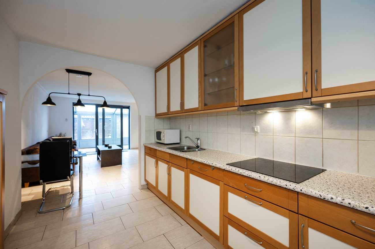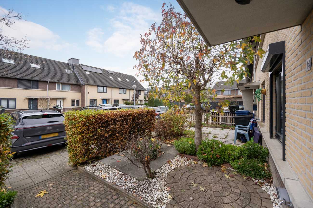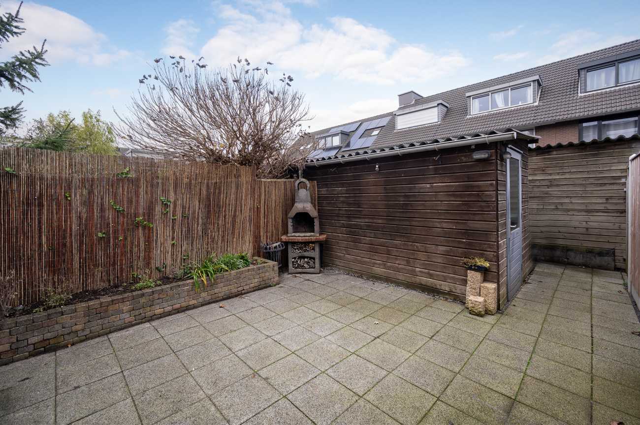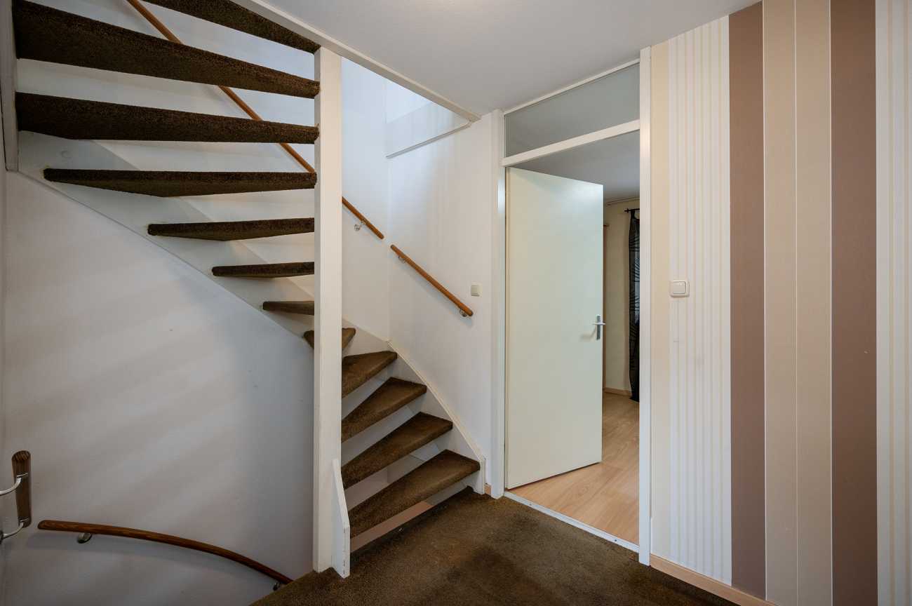 Entree met hal, meterkast, toilet en trapopgang naar de eerste verdieping. Vanuit de hal bereikt u de riante woonkamer, die is voorzien van een uitbouw in de vorm van een serre, waardoor extra ruimte is gecreëerd. De keuken is uitgerust met diverse inbouwapparatuur, waaronder een oven, keramische kookplaat, koel-vriescombinatie, afzuigkap en vaatwasser. Daarnaast beschikt de keuken over een praktische carrouselkast en meerdere lades met soft-close mechanisme, wat bijdraagt aan optimaal gebruiksgemak en efficiënte bergruimte. Alle wanden op de begane grond zijn afgewerkt met spachtelputz. Op de vloer ligt een nette plavuizenvloer, die eenvoudig te onderhouden is. De achtertuin is gelegen op het noordoosten, waardoor u in de ochtend kunt genieten van de eerste zonuren. De tuin is volledig bestraat en daarmee nagenoeg onderhoudsvrij. Dit maakt de buitenruimte praktisch in gebruik en geschikt voor diverse indelings- en gebruiksmogelijkheden.