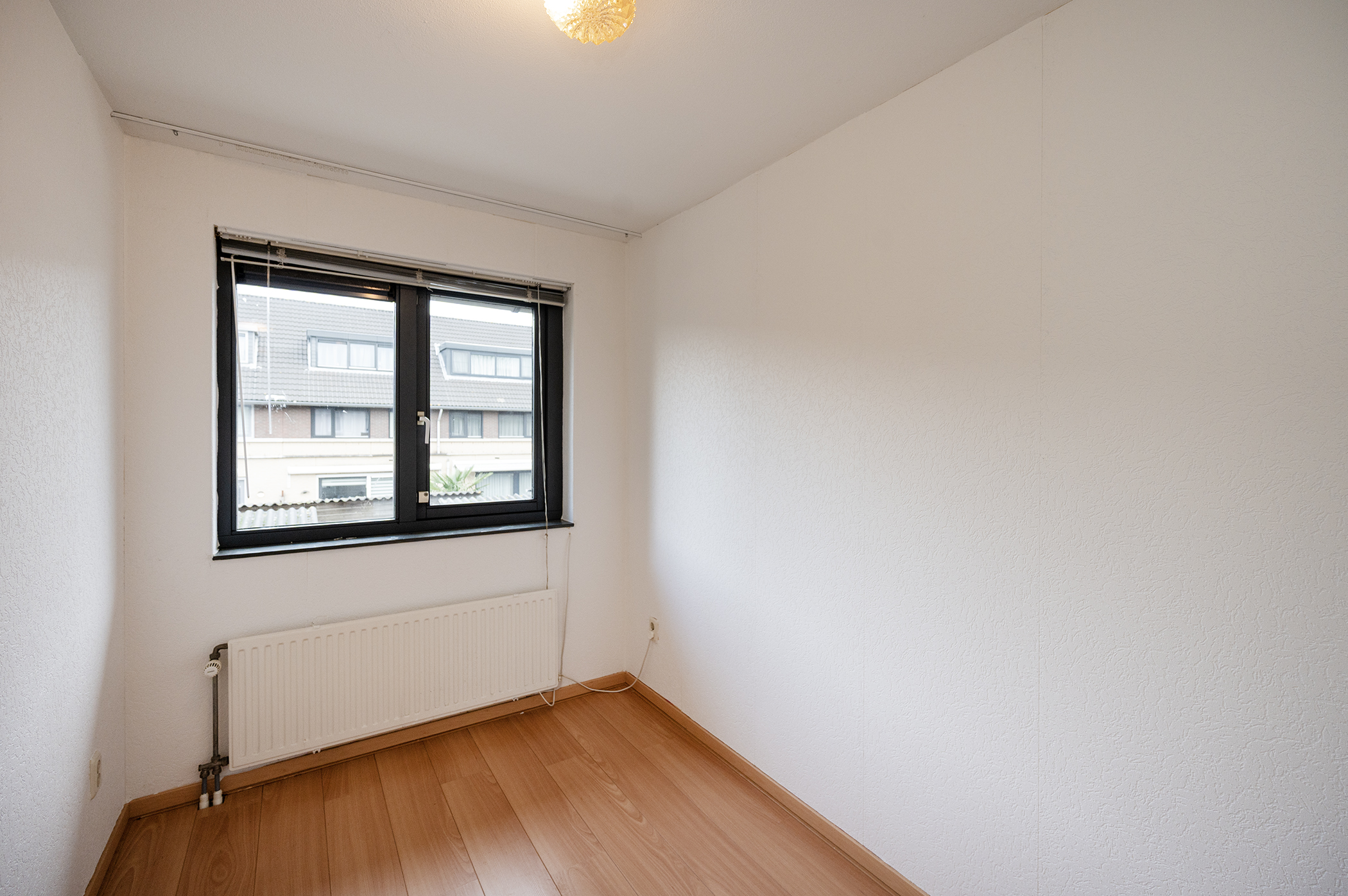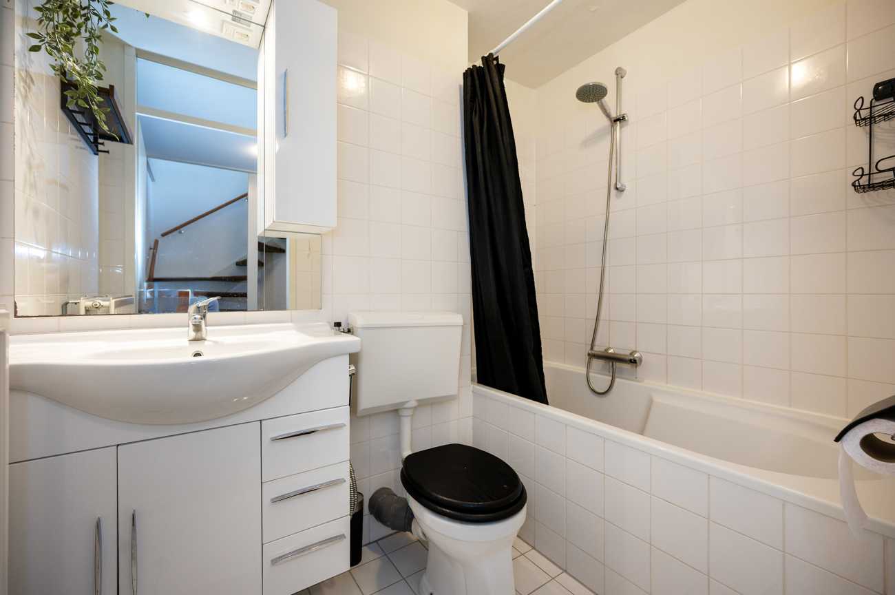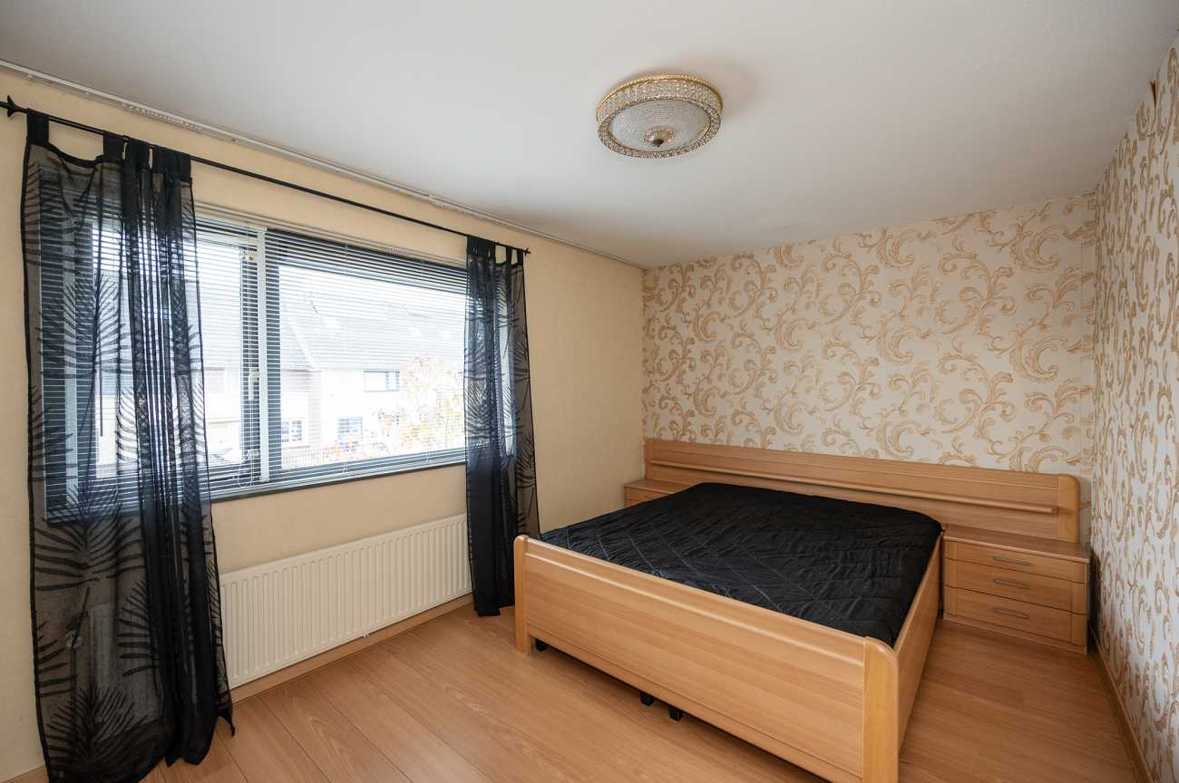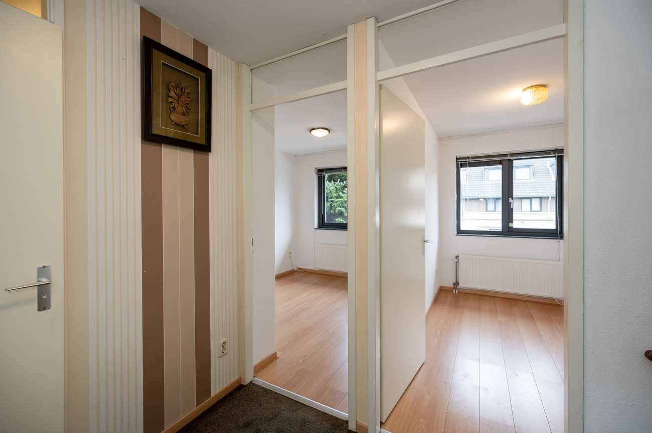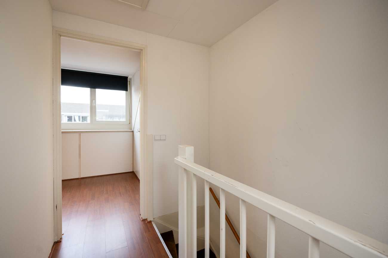 De overloop biedt toegang tot de badkamer en drie slaapkamers. De badkamer is functioneel ingericht en voorzien van een toilet, ligbad met douche en een wastafelmeubel. De drie slaapkamers bieden een praktische indeling en voldoende daglicht, waardoor ze geschikt zijn als hoofdslaapkamer, kinder- of werkkamer. Op deze verdieping ligt een nette laminaatvloer.