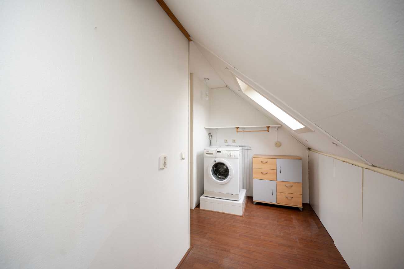 Op de tweede verdieping bevindt zich een voorzolder met bergruimte en een praktische opstelplaats voor het witgoed. Doordat er een dakkapel is geplaatst op zolder biedt dit een volwaardige extra kamer, die geschikt is als slaapkamer- of werkkamer. De ruimte is functioneel ingedeeld en biedt diverse gebruiksmogelijkheden.