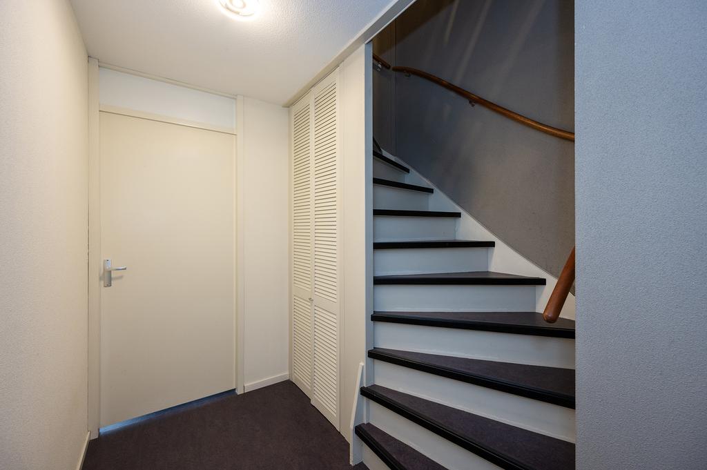 U betreedt de woning via de voortuin en komt binnen in een ruime hal. Vanuit de hal heeft u toegang tot het toilet, een slaapkamer, de trapopgang naar de eerste verdieping en de inpandige garage. Op de begane grond bevindt zich tevens een royale kamer met directe toegang tot de achtertuin. Deze veelzijdige ruimte is ideaal te gebruiken als extra slaapkamer of werkruimte.