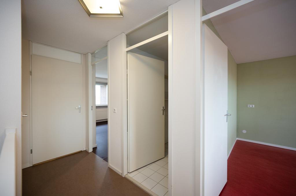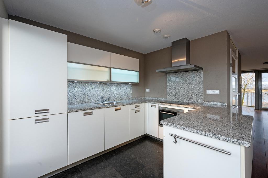 Via de trapopgang komt u op de overloop, die toegang biedt tot de ruime en lichte woonkamer. Aan de voorzijde van de woonkamer bevindt zich een schuifpui die toegang geeft tot de loggia, waar u kunt genieten van een vrij uitzicht. Aan de achterzijde grenst de eetkamer aan de luxe open keuken en biedt toegang tot het tweede balkon. De keuken is modern en beschikt over veel kastruimte, een koel- en vriescombinatie, een vaatwasser, een inbouw oven/magnetron, een inductiekookplaat en een afzuigkap.