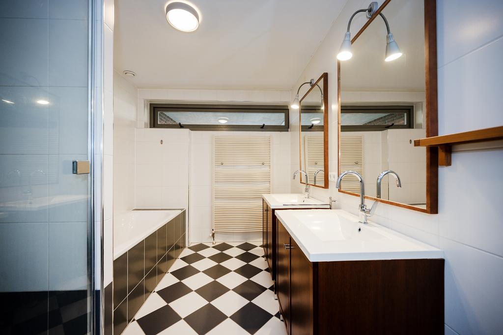 Ruime overloop, die toegang biedt tot diverse ruimtes. Hier vindt u een apart toilet, drie slaapkamers, een ruime wasruimte met berging en een royale badkamer. De badkamer is voorzien van een ligbad, een aparte douchecabine, een dubbele wastafel met meubel en een handdoekradiator. De master bedroom bevindt zich aan de voorzijde van de woning en biedt volop ruimte en licht. De andere twee slaapkamers zijn gelegen aan de achterzijde.