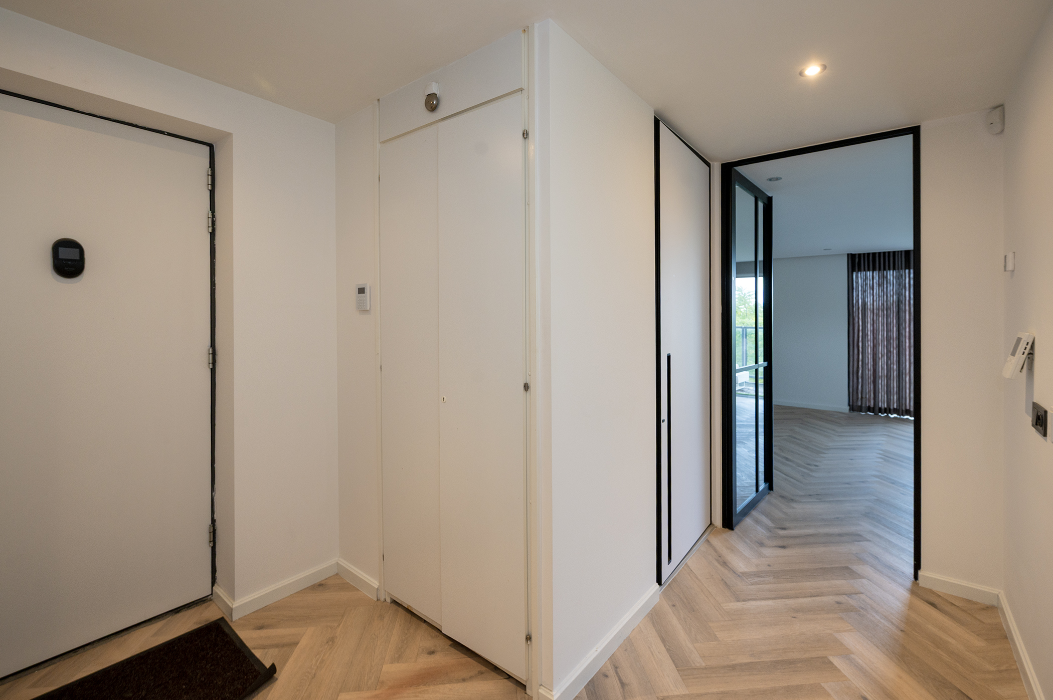 Via de entree kom je in een ruime hal die toegang biedt tot de meterkast, een praktische bergkast en een separaat toilet. De woning beschikt over twee ruime slaapkamers. De badkamer is volledig betegeld en voorzien van een inloopdouche, een dubbele wastafel en een handdoekenradiator. Vanuit de royale hal bereik je de lichte woonkamer. Dankzij de grote raampartij en de schuifpui naar het balkon op het westen geniet je hier van veel natuurlijk licht en een prettige buitenruimte. De keuken is voorzien van een keukenblok en is uitgerust met een inbouw inductieplaat, inbouw afzuiginstallatie, combinatie oven en magnetron, vaatwasser, koelkast en een vriezer.