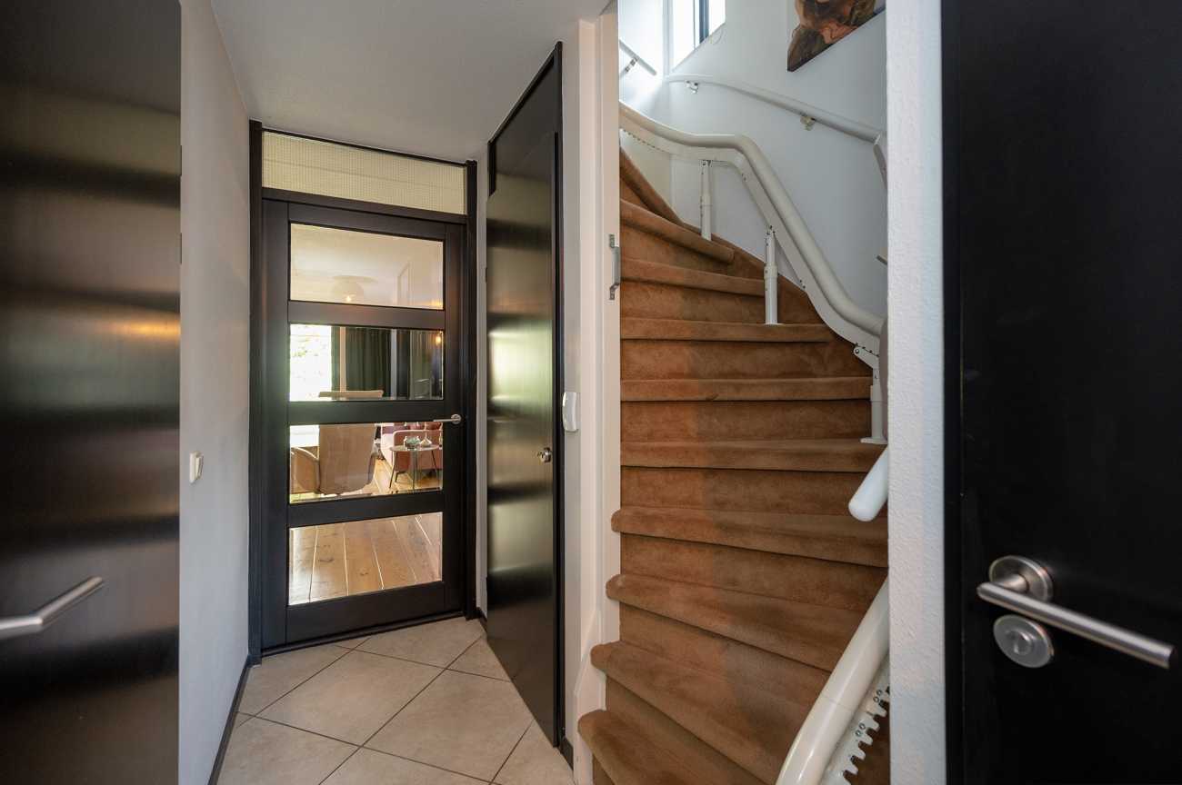 Bij aankomst parkeert u eenvoudig op eigen terrein en heeft u via de voortuin toegang tot de zijtuin en de garage/bijkeuken. Binnenkomst in de hal met toegang tot de keuken, woonkamer, het vernieuwde toilet met ingebouwd bidet functie, trapopgang en de garage waar de wasmachine-opstelling is geplaatst.