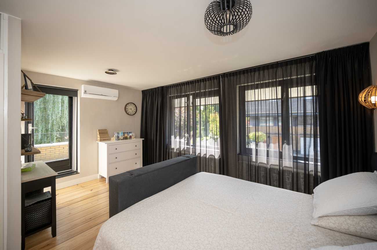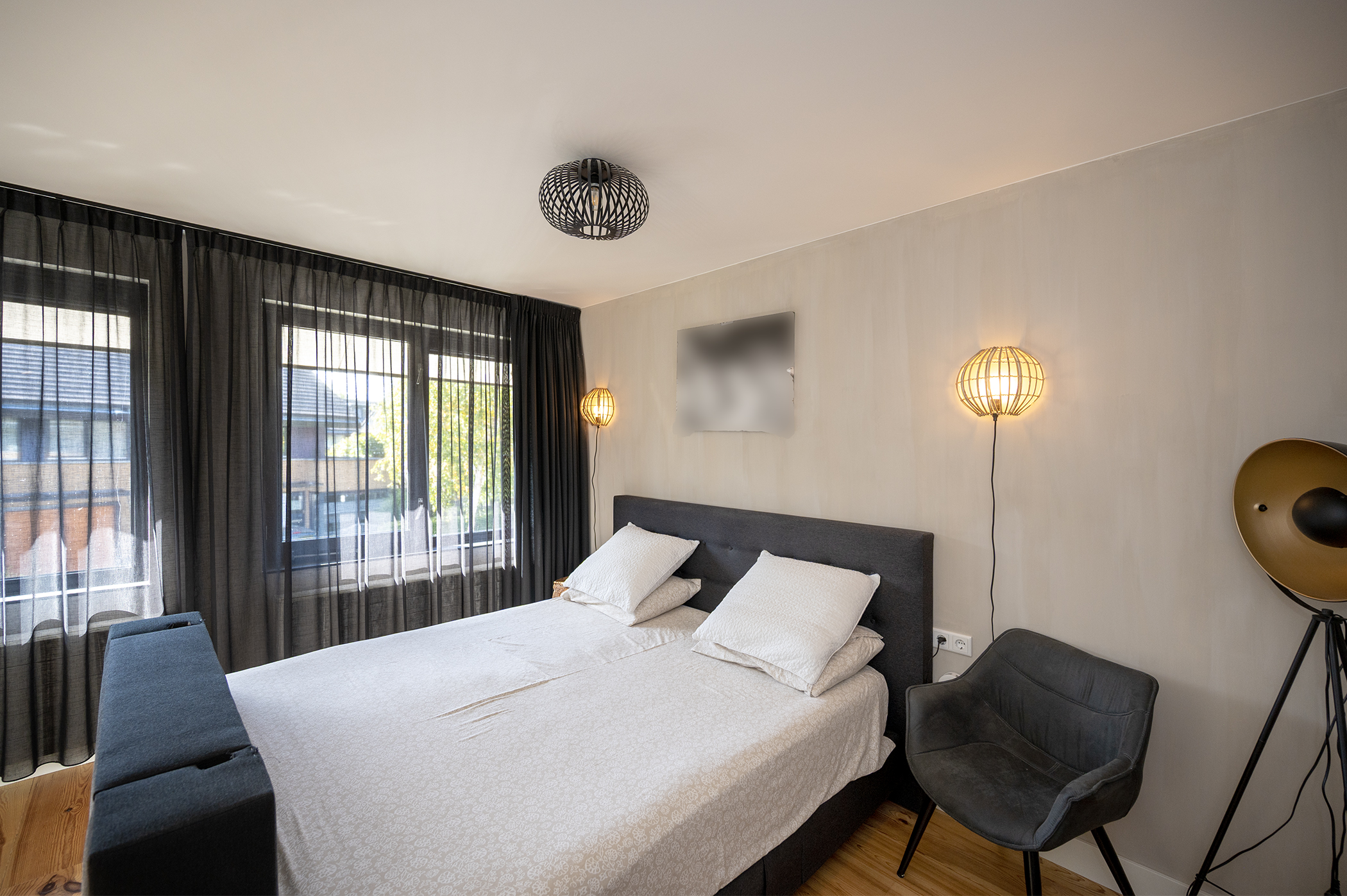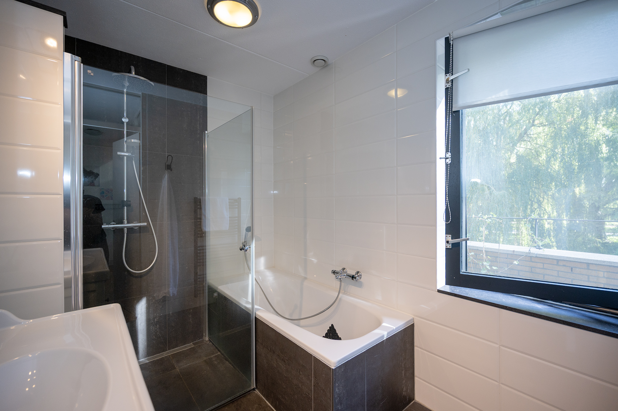 De royale masterslaapkamer aan de voorzijde, strak afgewerkt en voorzien van screens en een airco voor zowel koelen als verwarmen. Deze ruimte kan eenvoudig worden opgesplitst in twee aparte slaapkamers. U beschikt over een ruime slaapkamer aan de tuinzijde, welke naast de badkamer is gelegen en toegang heeft tot het dakterras aan de tuinzijde De badkamer met ligbad, inloopdouche met uitvouwbare deur en een modern wastafelmeubel is functioneel ingericht. Het apart gelegen toilet is vernieuwd en voorzien van natuurstenen tegels. Ook heeft u vanaf deze verdieping toegang tot het ruime dakterras aan de zijkant van de woning.