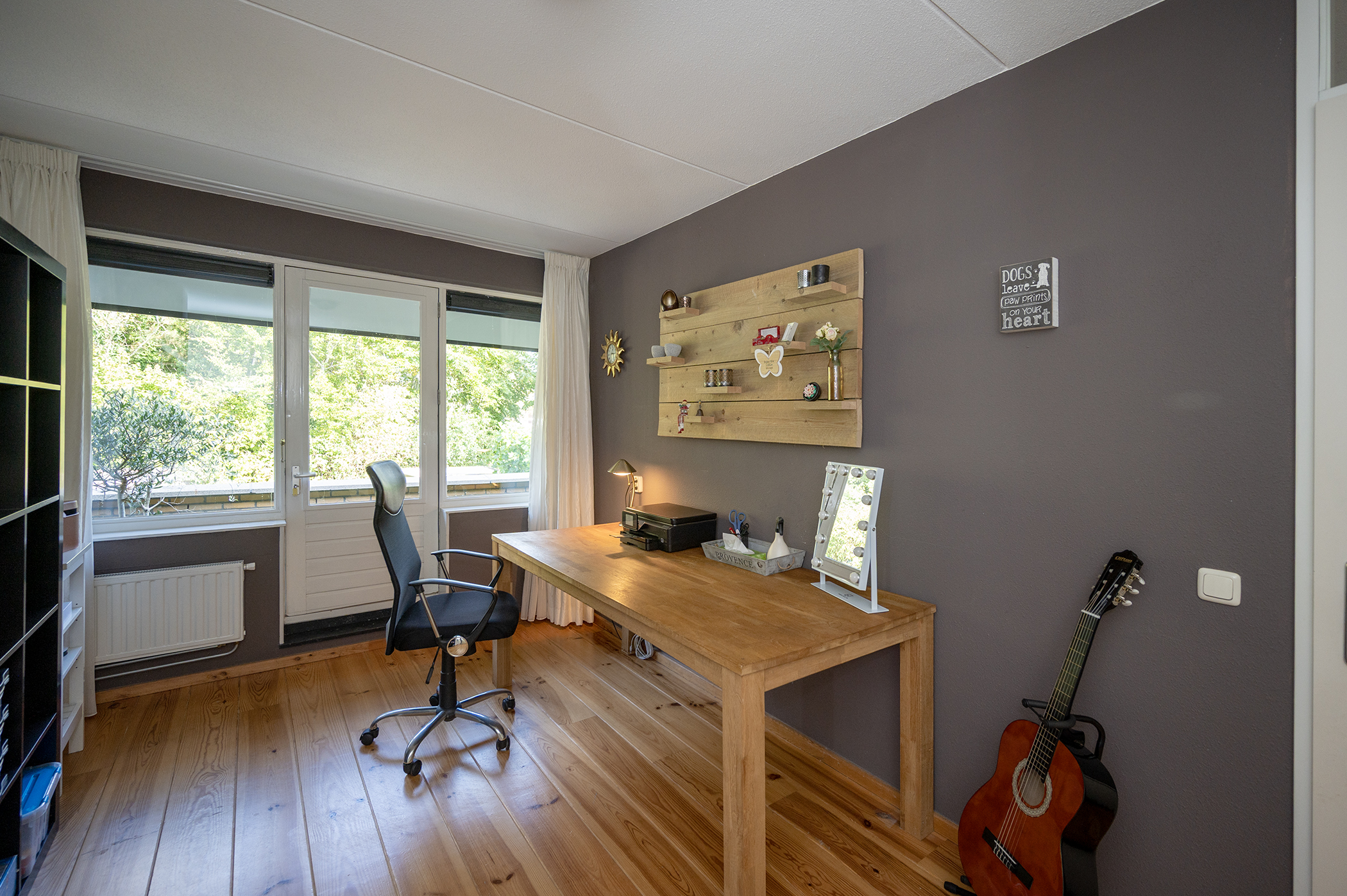 Een grote open ruimte die momenteel in gebruik is als logeerkamer en gym. Dankzij de indeling is het eenvoudig mogelijk om hier extra slaapkamers, een werkkamer of speelruimte te creëren.