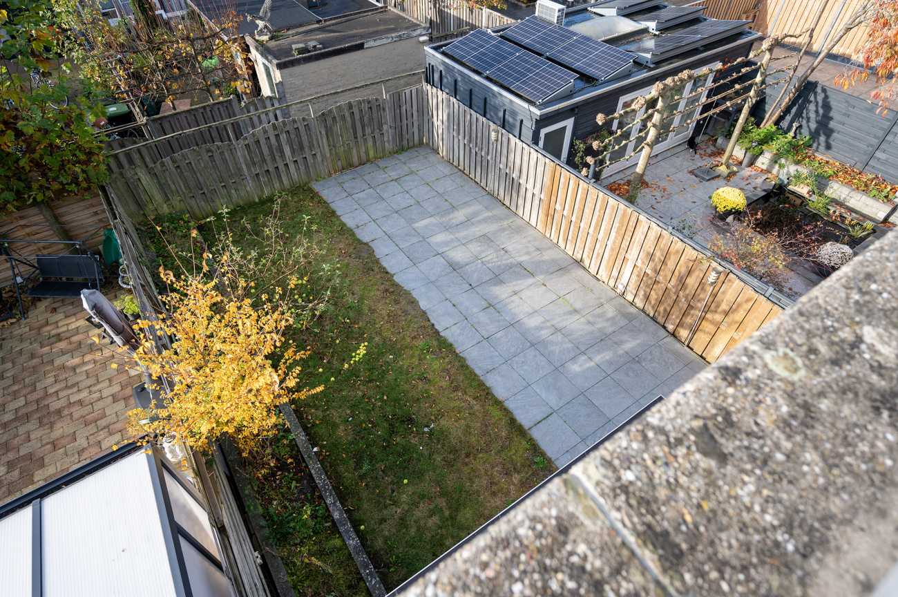 De voortuin is verzorgd aangelegd en volledig betegeld, met voldoende ruimte om één auto op eigen terrein te parkeren. De achtertuin is praktisch ingericht met een combinatie van bestrating en een gazon, waardoor zowel onderhoudsvriendelijkheid als groen aanwezig is. Daarnaast beschikt de achtertuin over een achterom, wat zorgt voor extra bereikbaarheid en gebruiksgemak. Dankzij de ligging op het zuidwesten profiteert de tuin gedurende de gehele dag van optimale zoninval.