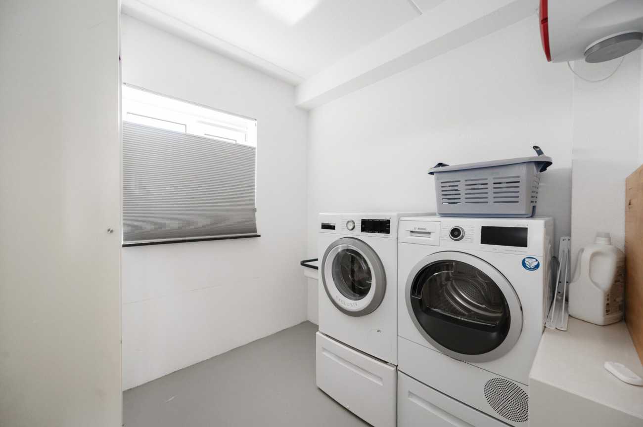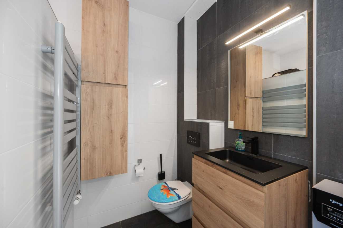 Here you will find two bedrooms and a luxurious bathroom with a walk-in shower, bathtub, double sink, and separate toilet. Thanks to the air conditioning, you can enjoy a pleasant temperature here all year round. There is also a separate laundry room. Here, too, you will experience the luxury of a sleek cast floor equipped with underfloor heating, which can be regulated per room.