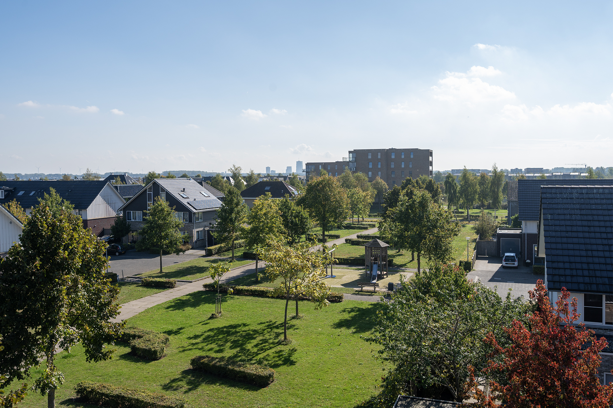 Luxury corner house featuring, among other things, two roof terraces, 4 bedrooms, 2 bathrooms, a workspace, and a private parking space with a charging station in Noorderplassen – Stopperknoop 27, Almere