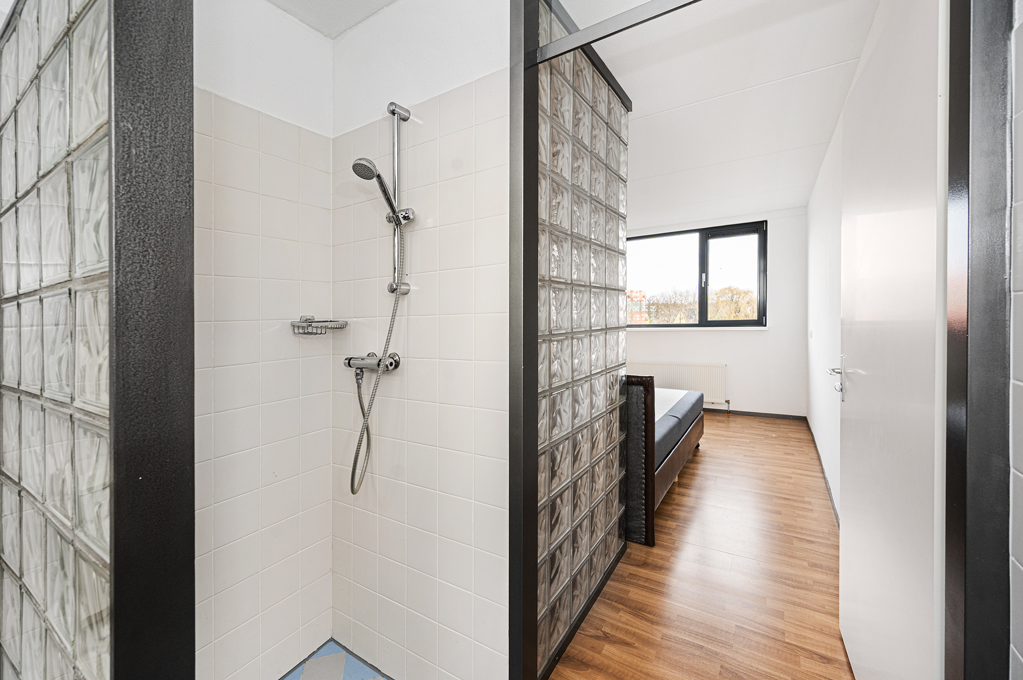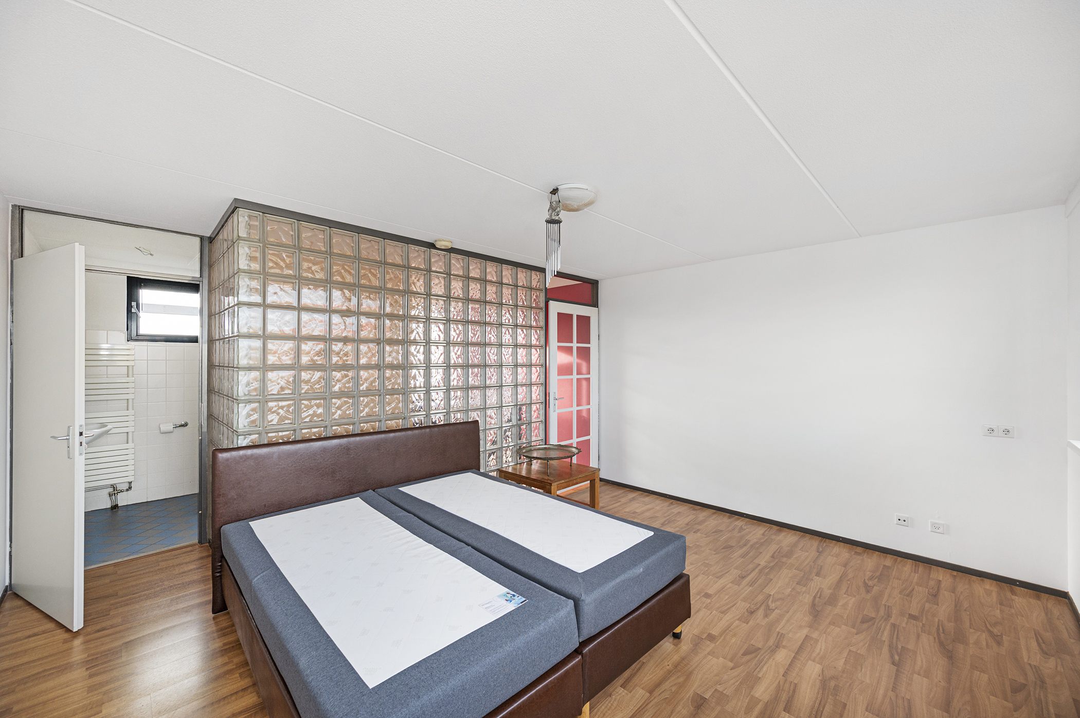Daarnaast beschikt deze verdieping over een ruime slaapkamer. Deze slaapkamer grenst aan de badkamer, die is uitgerust met een douche, toilet en wastafel. Door de slimme indeling en het gebruik van licht en ruimte biedt deze verdieping volop mogelijkheden om het geheel volledig aan te passen aan uw persoonlijke woonwensen.