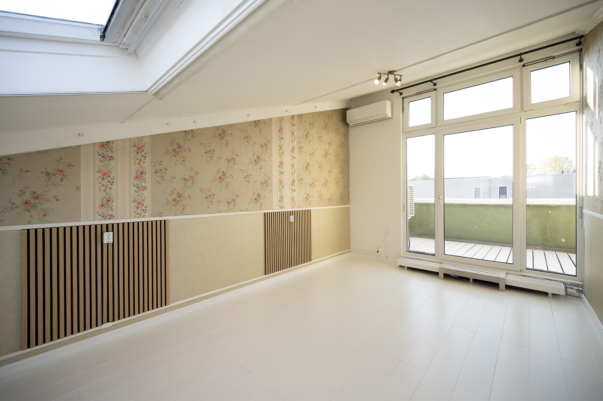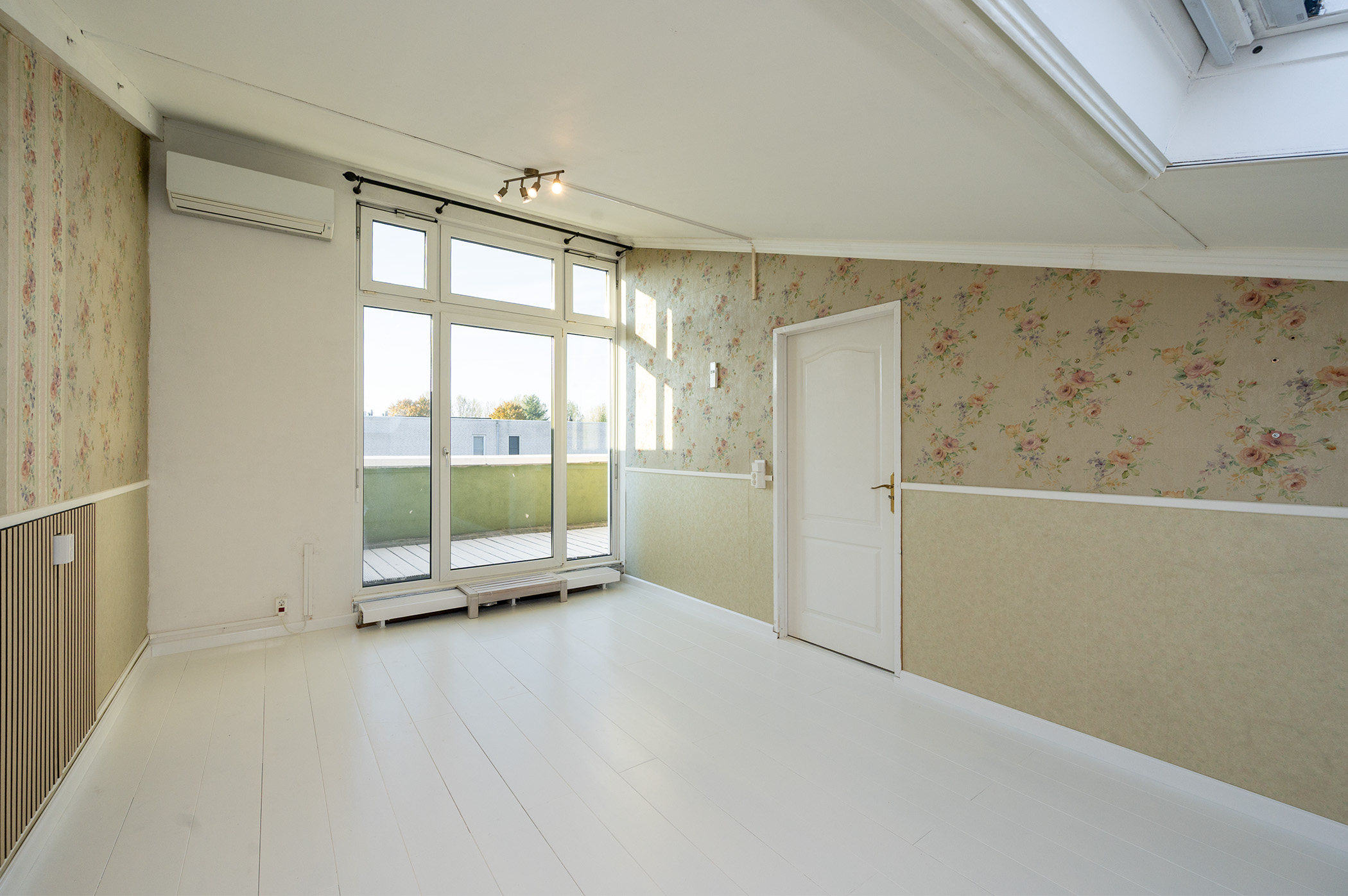 The master bedroom is located on the second floor, with its own windowed door providing direct access to the balcony. The roof terrace floor has already been renovated. The master bedroom is equipped with a Daikin 4.5 kW air conditioning system (cooling and heating) and a radiator. On the south corner of the second floor is a spacious landing with the new (2025) Remeha central heating boiler and connections for a washing machine and dryer. On the north side is an additional small open space that can be used as a library.