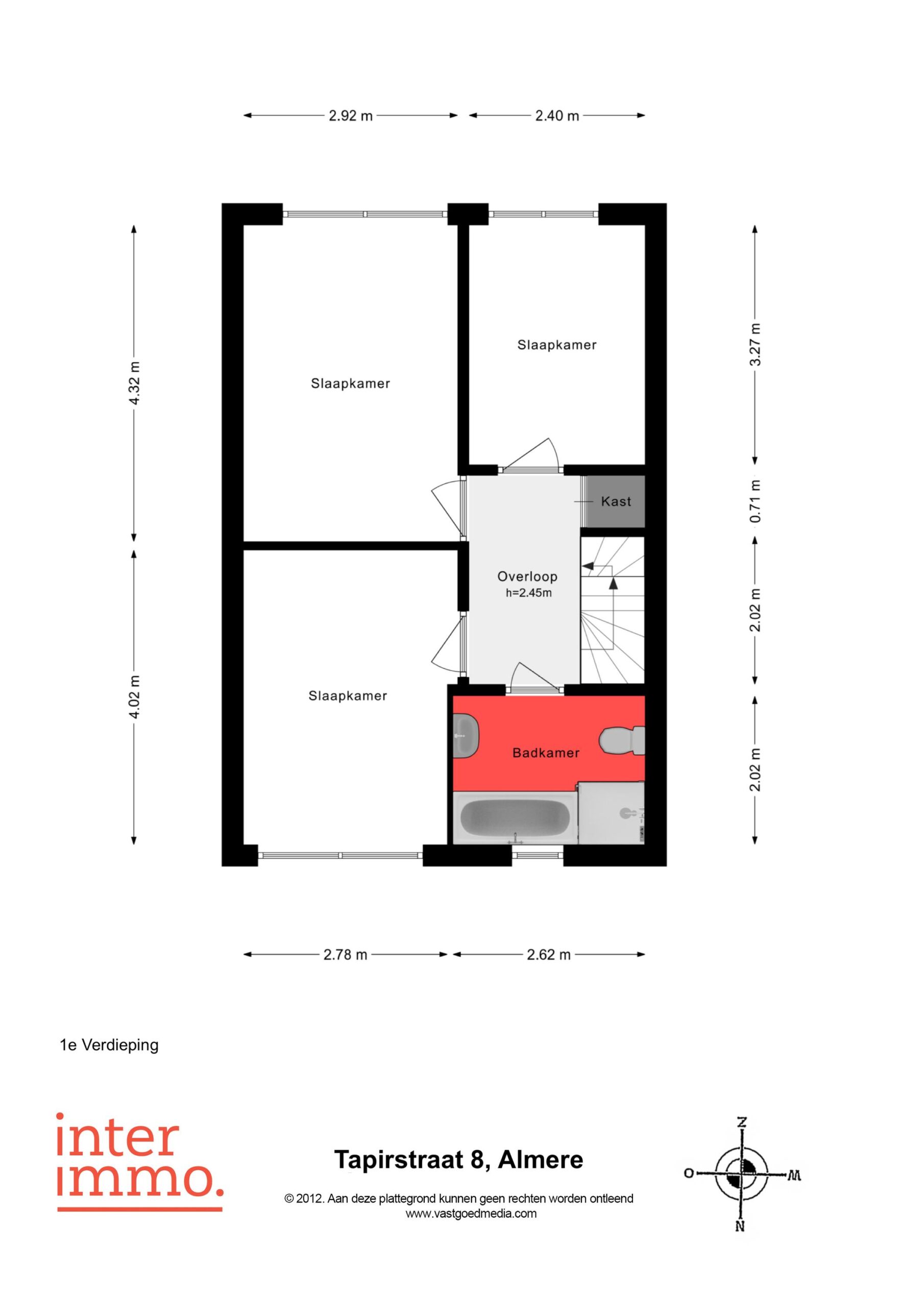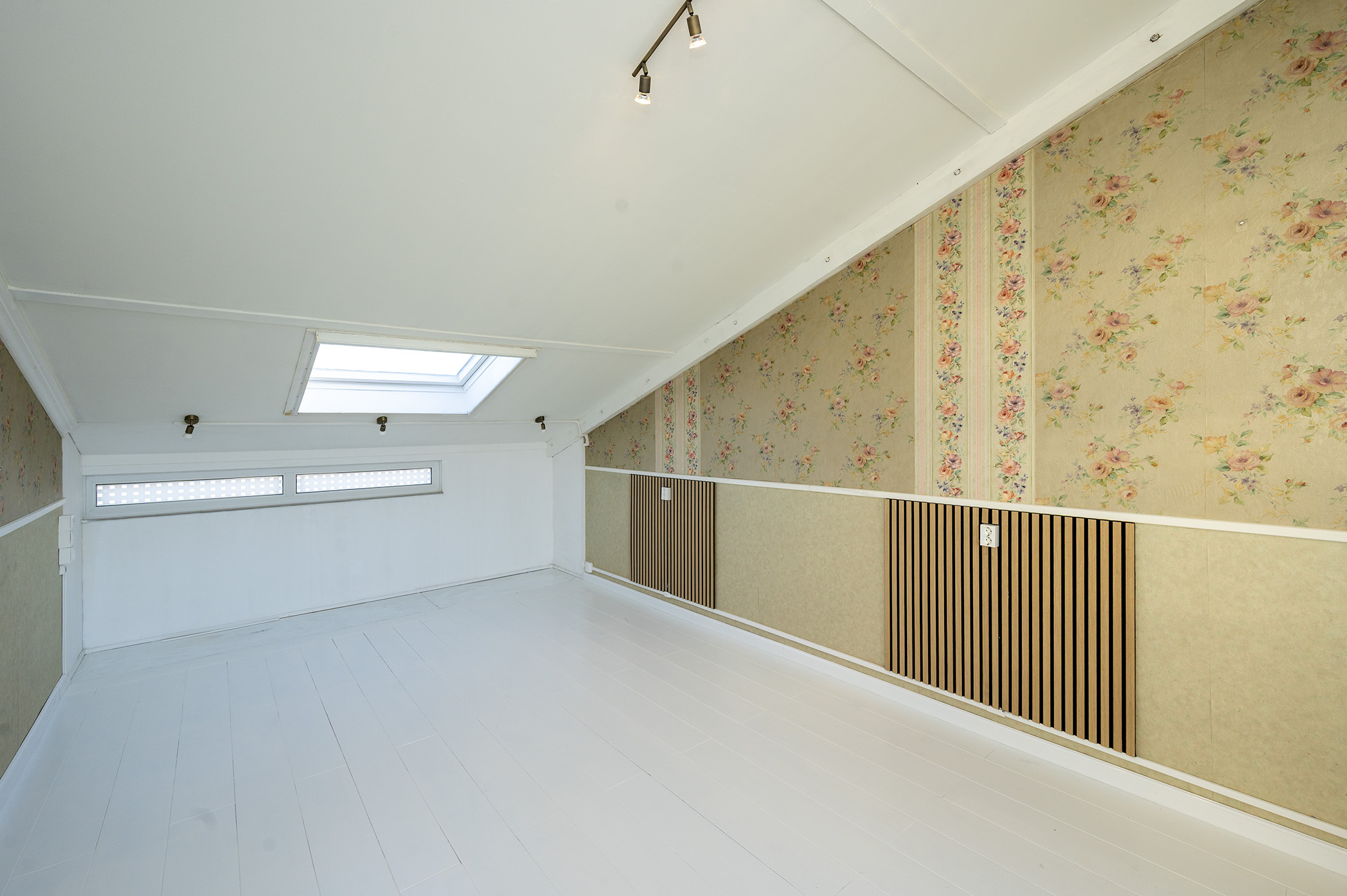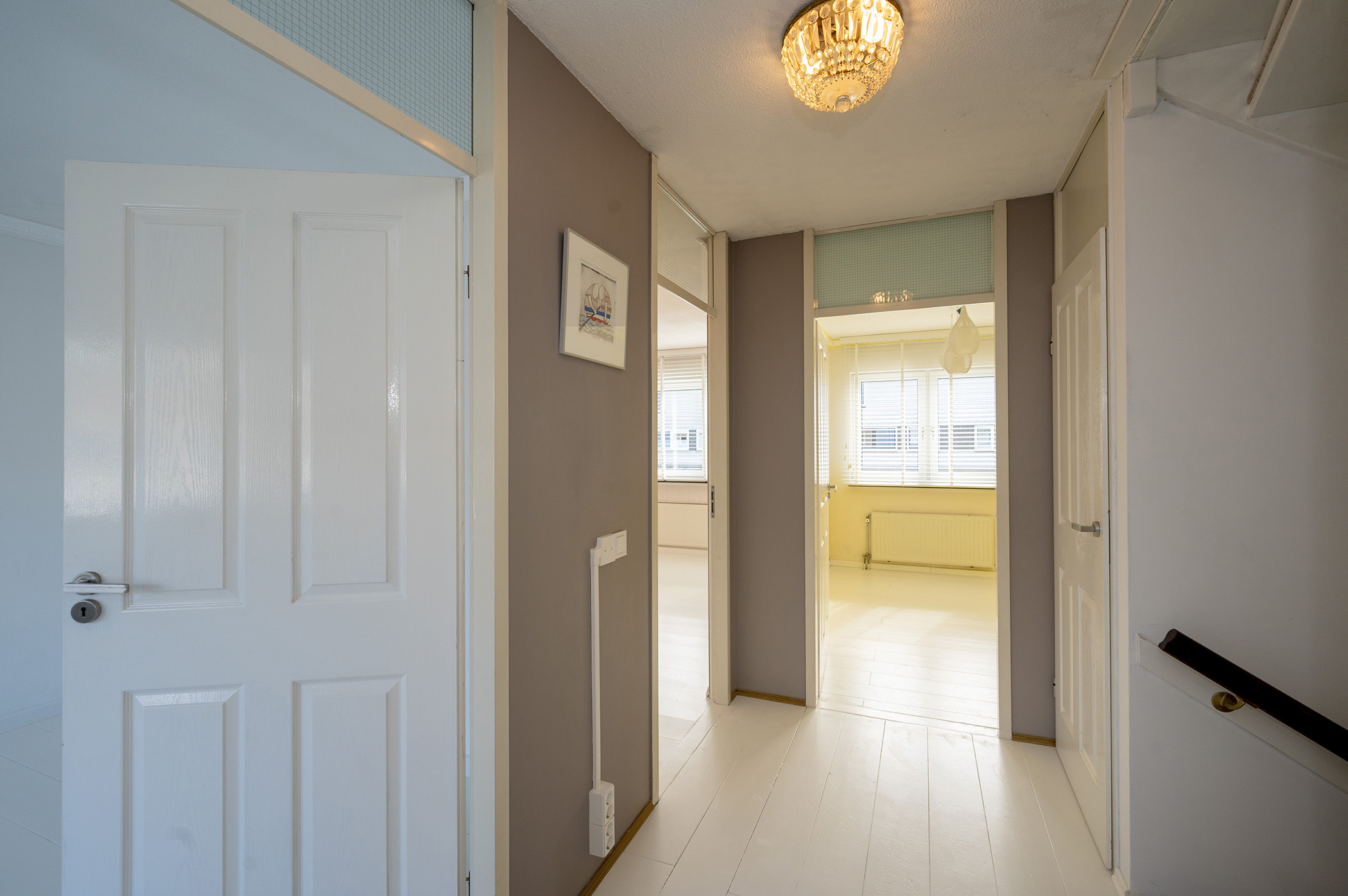 Vanaf de overloop zijn drie ruime slaapkamers bereikbaar. De slaapkamer aan de voorzijde heeft een verhuisraam, waardoor u beide ramen tegelijk kunt openen; dit wordt gebruikt om grotere voorwerpen eenvoudig naar boven te vervoeren. De muren van de slaapkamer aan de achterzijde zijn voorzien van een geluidsdicht systeem. Alle deuren op de eerste verdieping zijn recent vervangen. De kamers hebben een prettige lichtinval. De badkamer is vernieuwd in september 2025 en uitgerust met een ligbad, een aparte douche, een wastafel en een toilet.