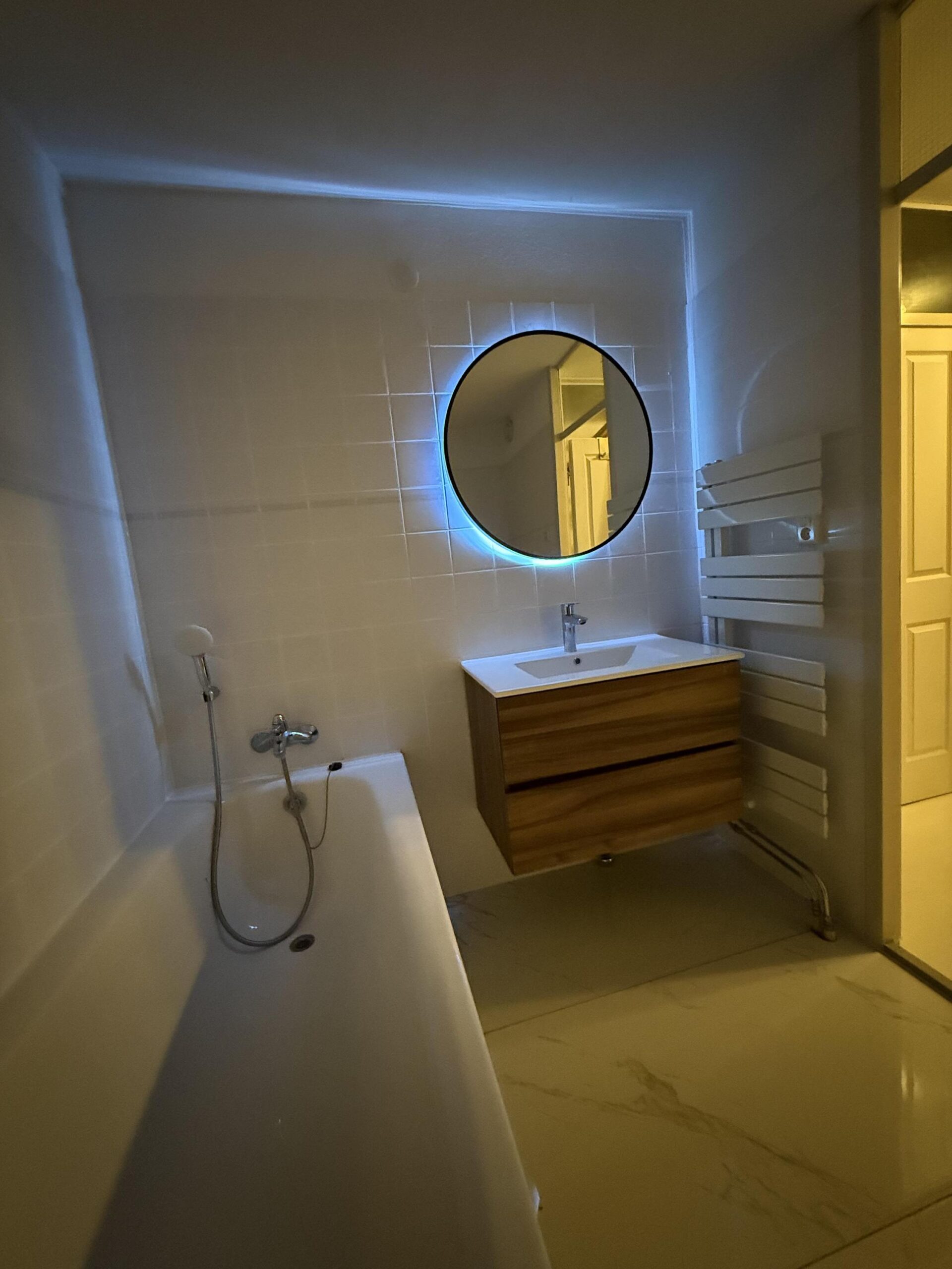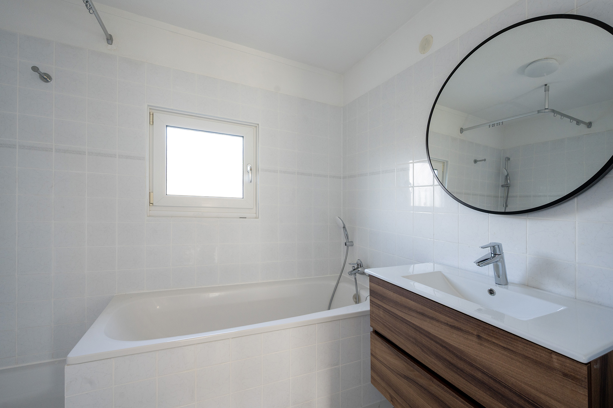 Three spacious bedrooms are accessible from the landing. The front bedroom has a sliding window, allowing you to open both windows simultaneously; this is useful for easily transporting larger items upstairs. The walls of the rear bedroom are soundproofed. All doors on the first floor have recently been replaced. The rooms are pleasantly bright. The bathroom was renovated in September 2025 and is equipped with a bathtub, separate shower, sink, and toilet.