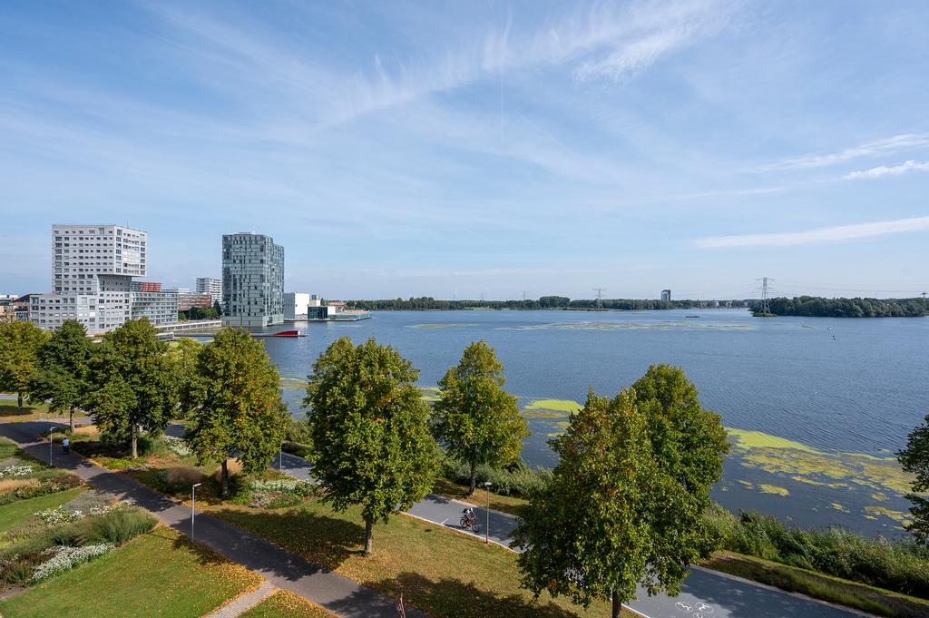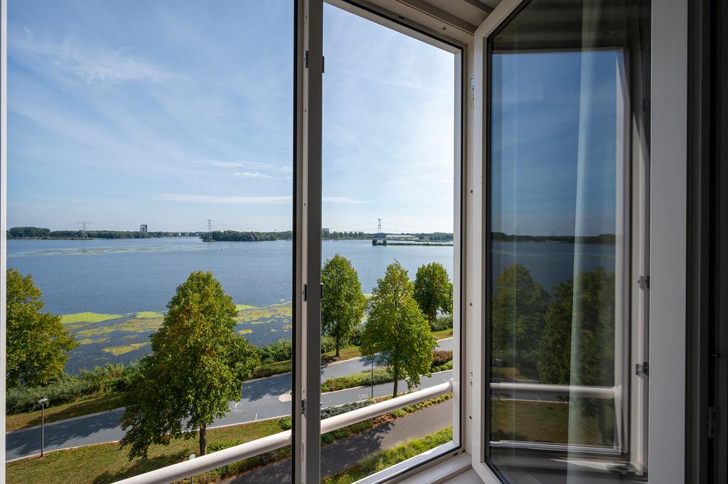 Op een schitterende en centrale locatie aan de rand van het stadshart vindt u dit fraaie drie kamer appartement met woonoppervlak van 77 m², gelegen op de vijfde (bovenste/hoogste) verdieping. Vanaf het balkon heeft u een fantastisch panoramisch uitzicht over het Weerwater. Dit complex biedt u onder andere een eigen parkeerplaats in de afgesloten parkeergarage, separate berging, meerdere liften en een videofooninstallatie. Supermarkt, bushalte en scholen bevinden zich op loopafstand. Het NS treinstation bevindt zich op 5 minuten fiets afstand. Het Weerwater en het centrum van Almere Stad zijn in de nabije omgeving.