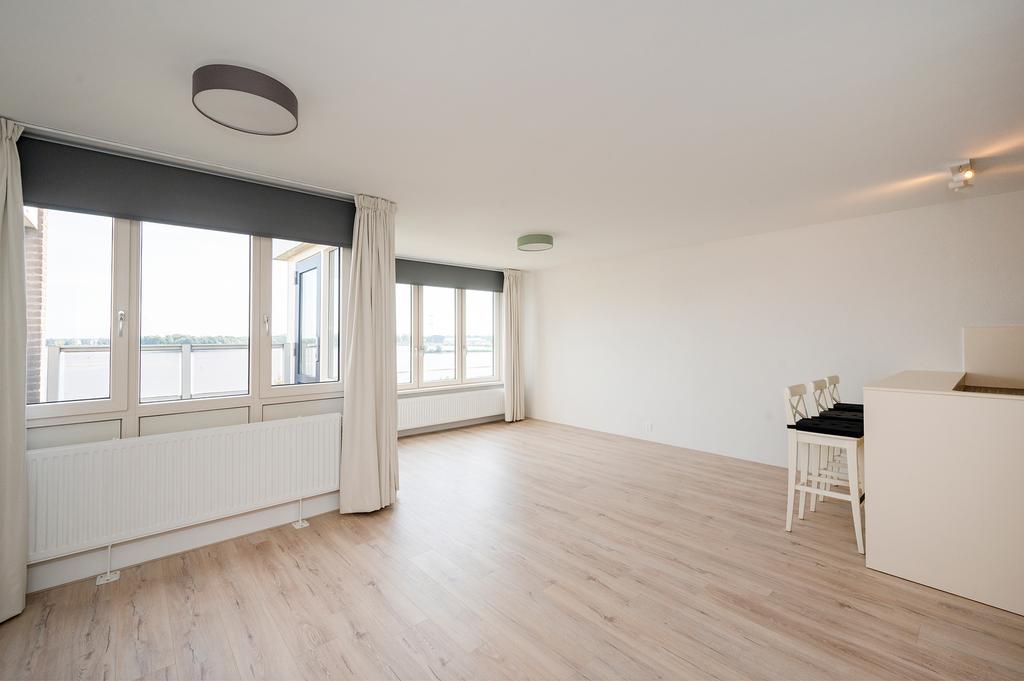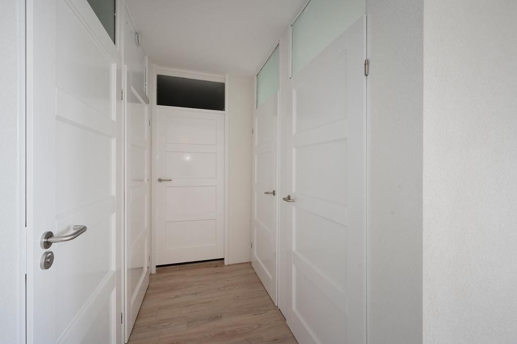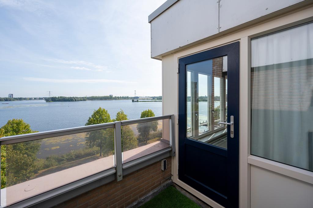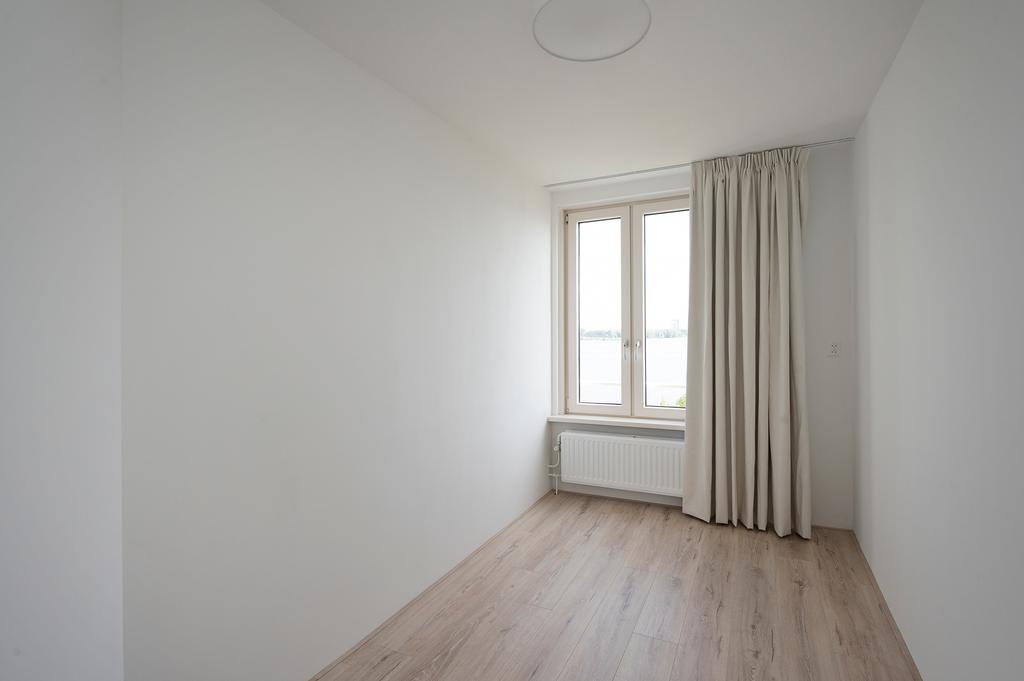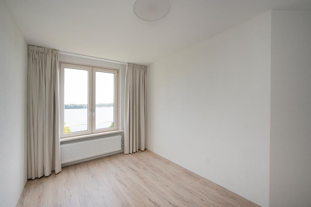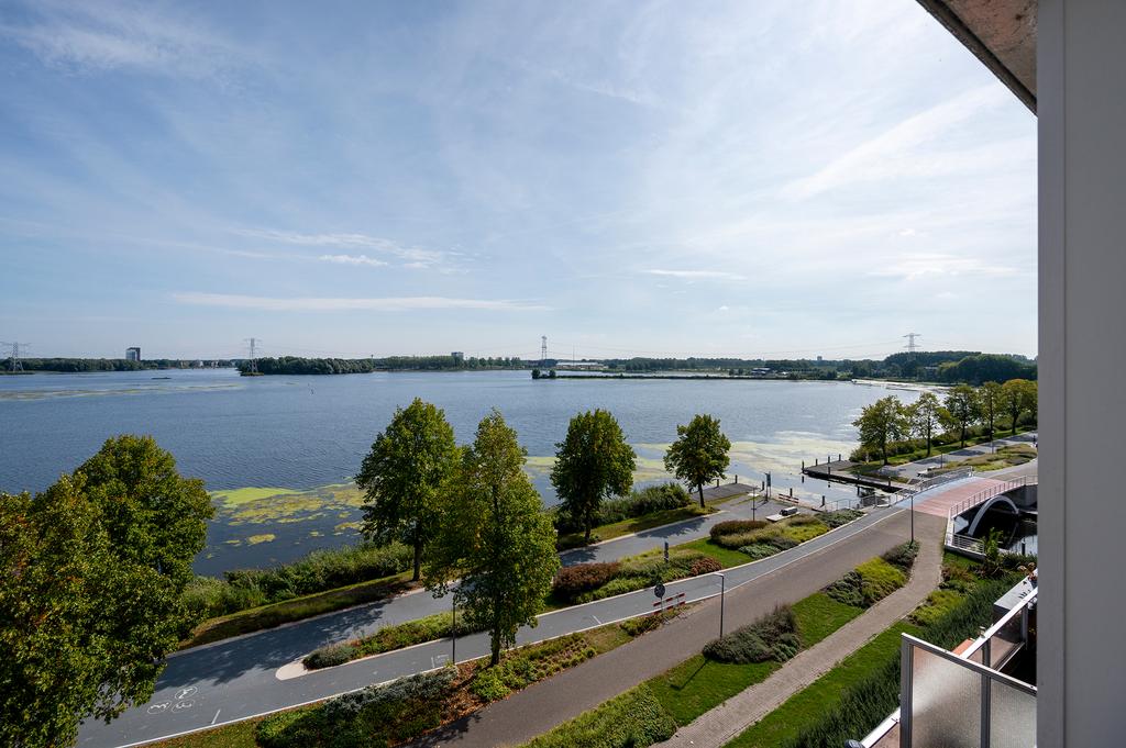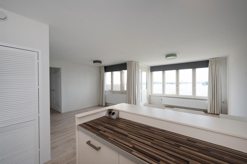 Entree, hal met toegang tot alle vertrekken. Toilet met fonteintje, meterkast met glasvezel, ruime bergkast met aansluiting voor de wasmachine, woonkamer met apart eetgedeelte, open keuken uitgerust met een vaatwasser, magnetron, oven, inductie kookplaat, grillplaat en een afzuigkap. De woonkamer is extra licht door de royale raampartijen en geeft toegang tot het balkon met veel privacy. Het appartement is in 2022 (met uitzondering van de keuken) helemaal gerenoveerd. Vanaf het balkon heeft u een fantastisch uitzicht over het Weerwater.