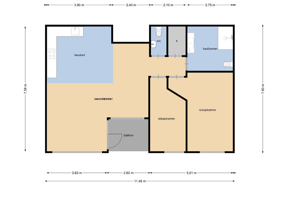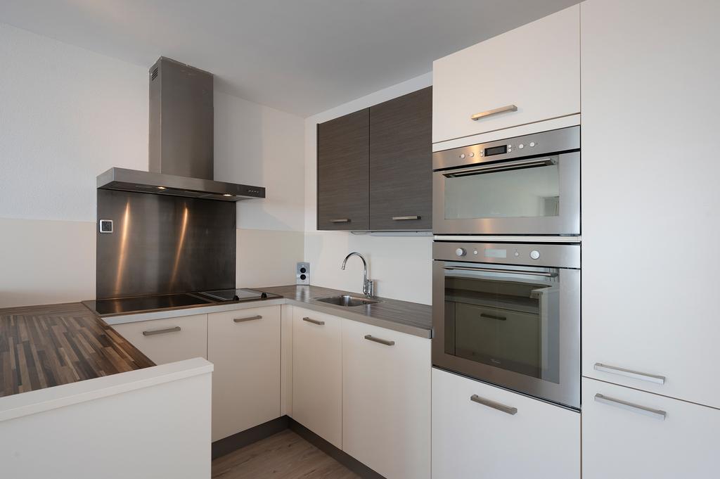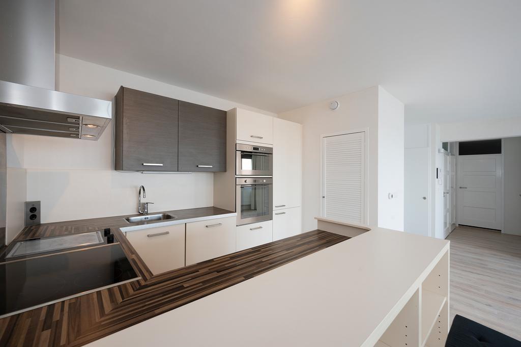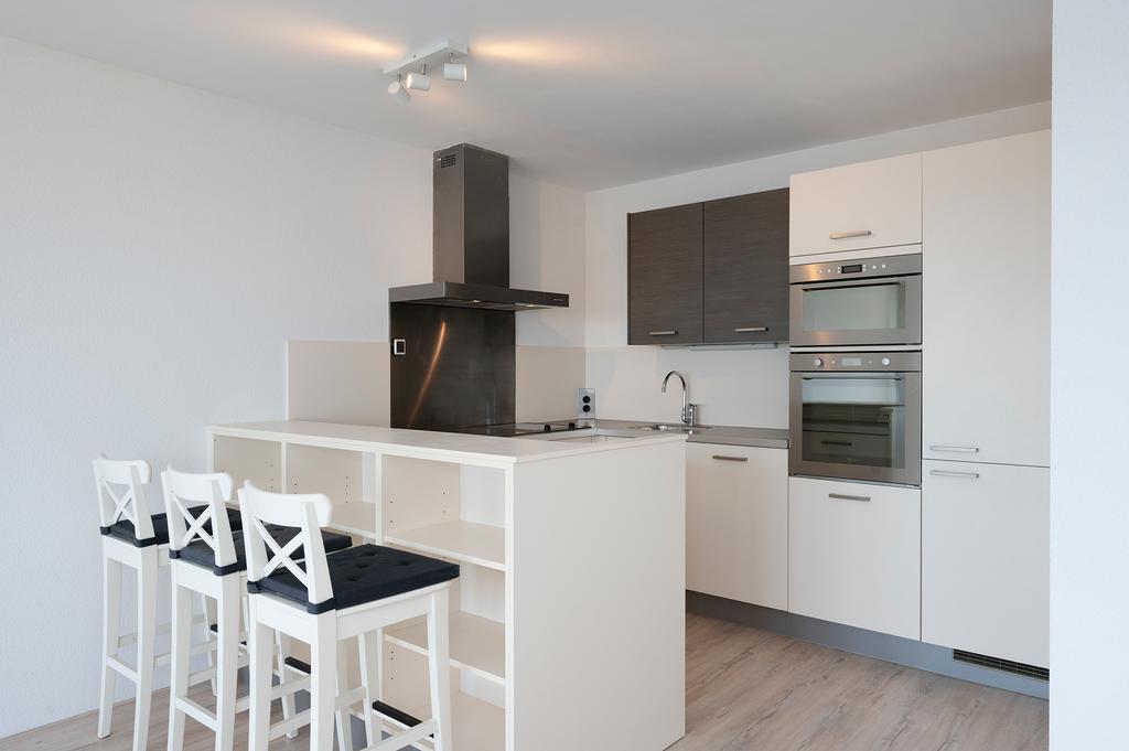 De half open keuken is voorzien van alle gemakken, zelfs met een schiereiland. Vanuit de keuken heeft u toegang tot een bergkast. Verder heeft dit appartement twee slaapkamers, waaronder een ruime slaapkamer met kledingkast.