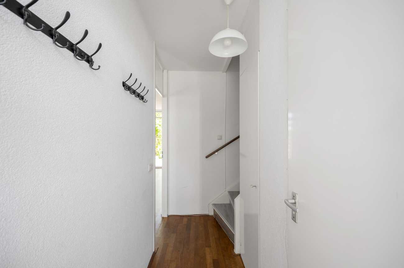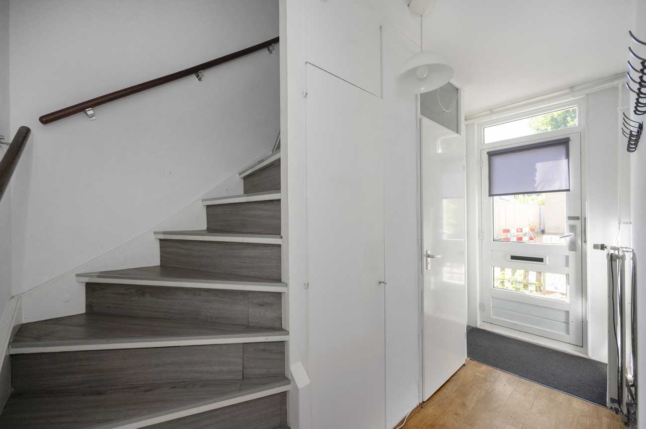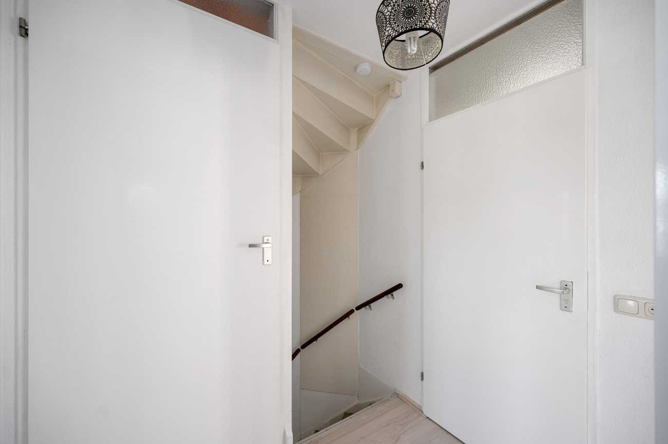 Via de entree komt u de hal binnen welke toegang geeft tot toilet met fonteintje, meterkast, woonkamer en trapopgang naar de eerste verdieping. De ruime woonkamer zorgt voor een gezellige sfeer en biedt verschillende mogelijkheden voor het inrichten van de leefruimte. De aangrenzende open keuken is modern en volledig uitgerust met alle benodigde apparatuur; een vaatwasser, oven, magnetron, koelkast, vriezer, kookplaat en afzuigkap. Via openslaande deuren bereikt u vanuit de woonkamer de tuin. De achtertuin is ruim opgezet en heeft veel privacy, een ideale plek om te dineren en zomers van de zon te genieten. In de tuin bevindt zich ook een schuur die extra bergruimte biedt voor fietsen of gereedschap.