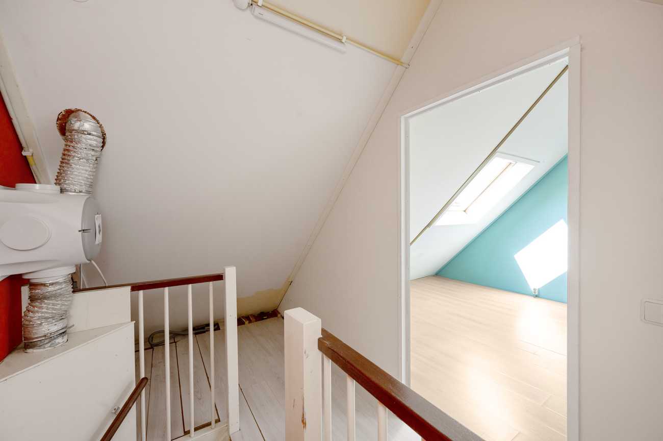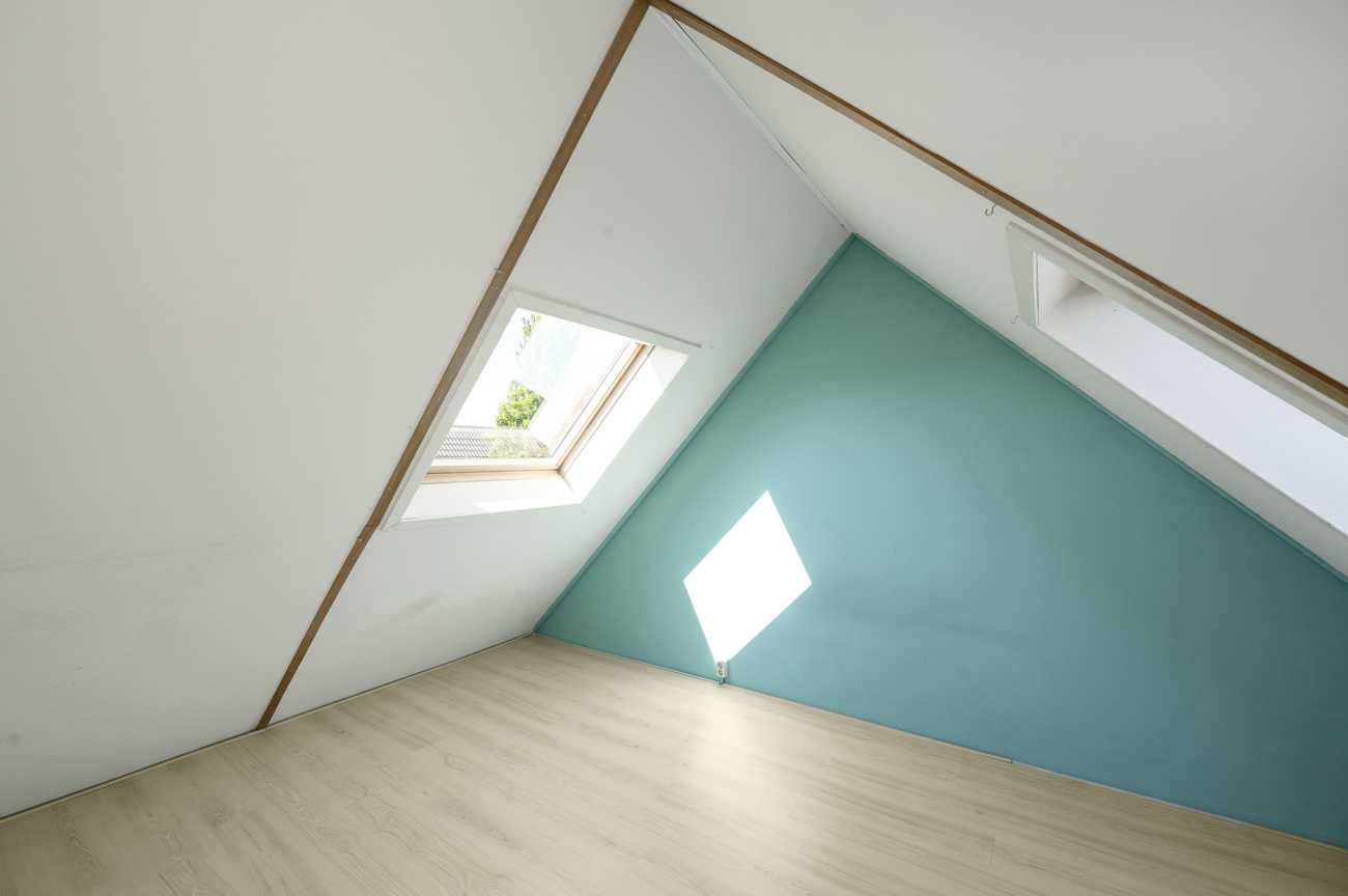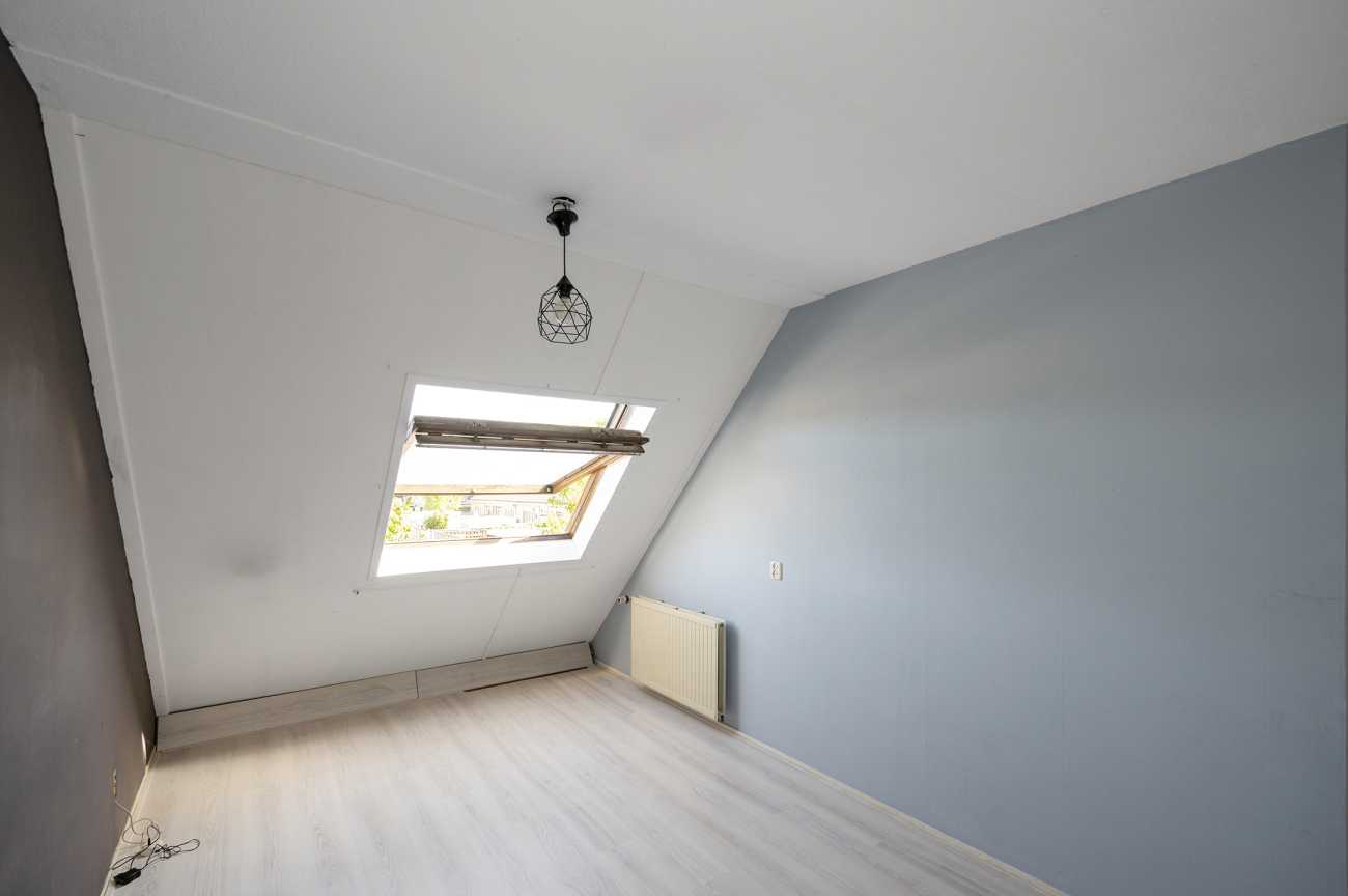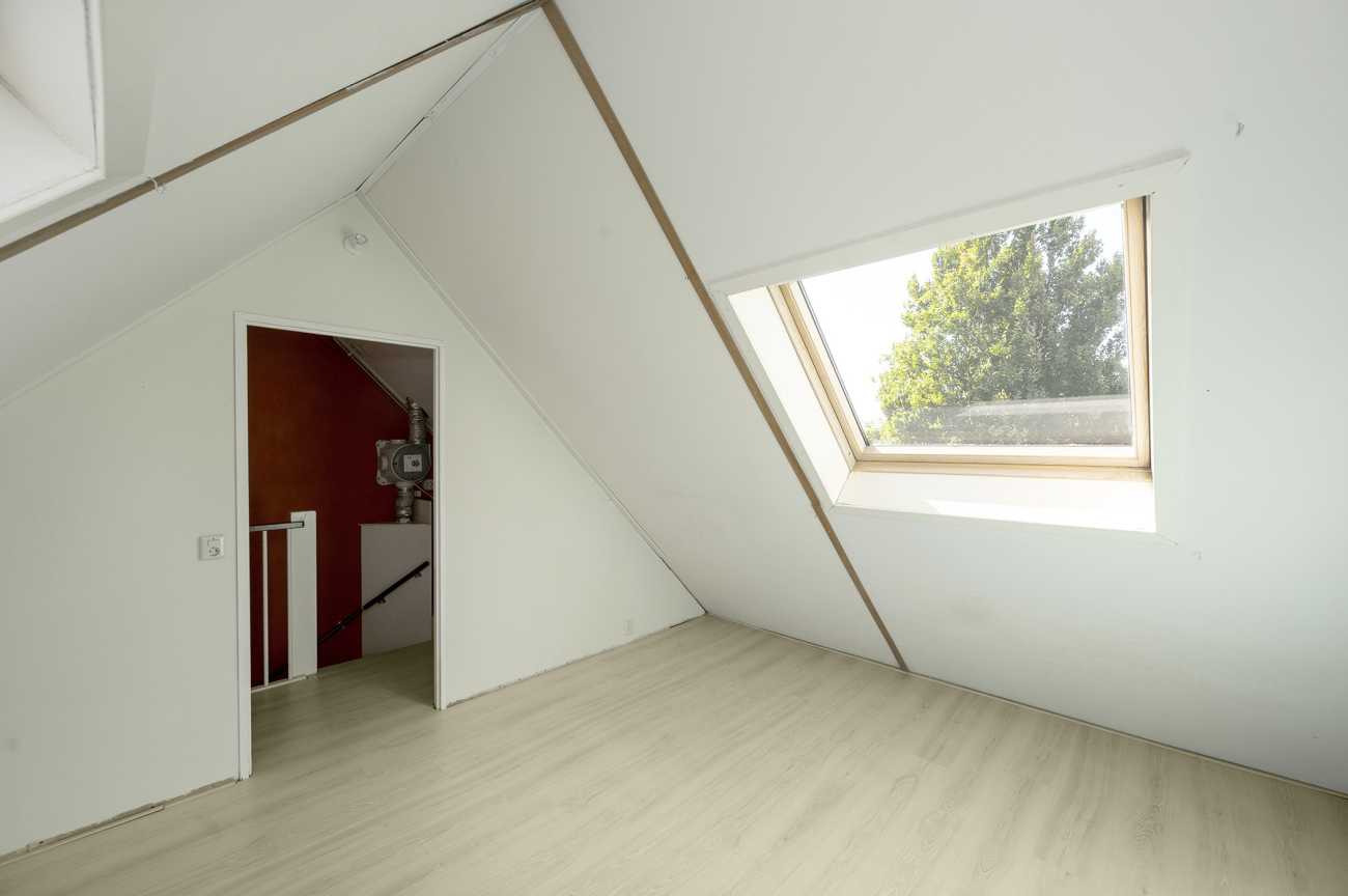 De zolderkamer op de tweede verdieping kan dienen als een vierde slaapkamer. Dit is een ruime kamer met dakramen voor voldoende lichtinval.