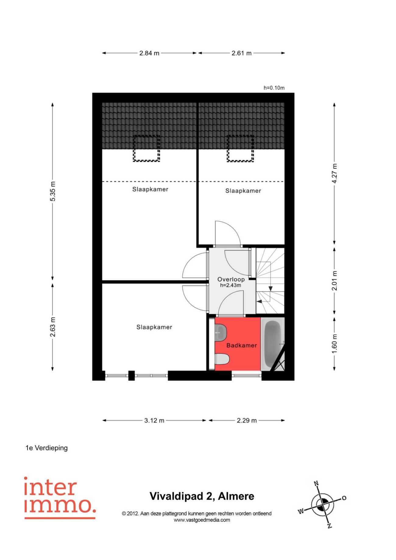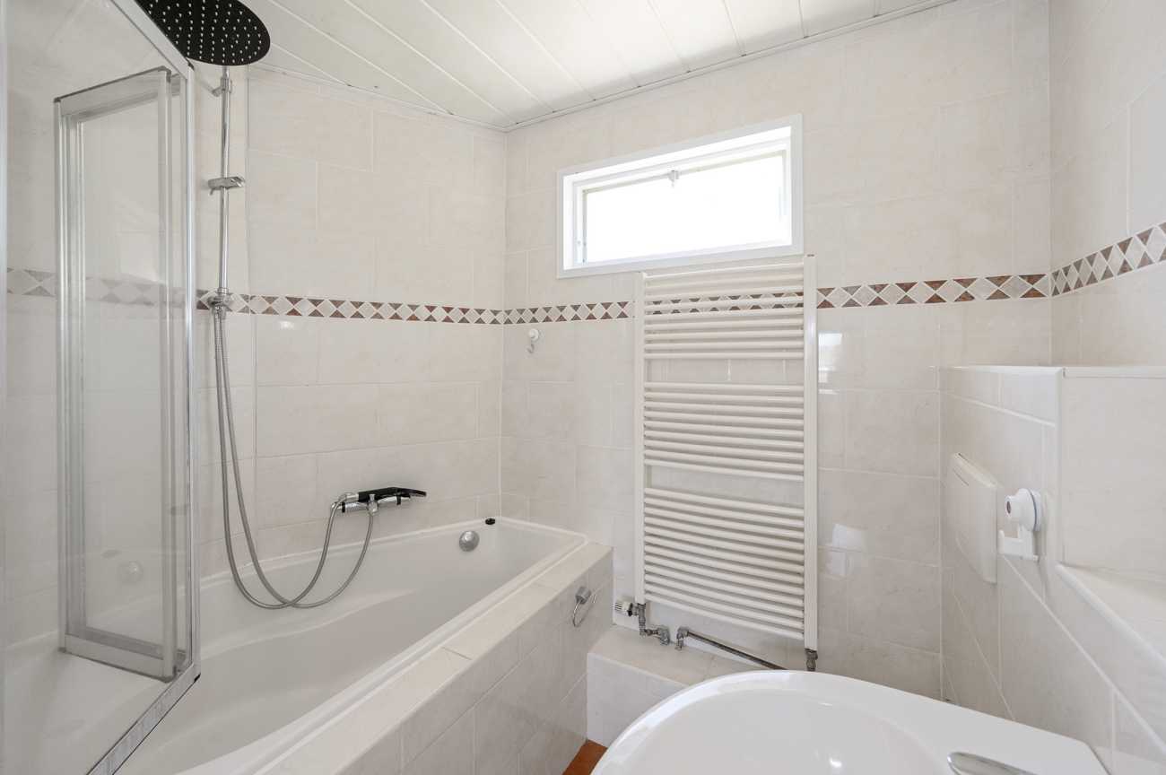 Op de eerste verdieping bevinden zich drie comfortabele slaapkamers, allemaal voorzien van grote ramen die zorgen voor veel daglicht. De badkamer is uitgerust met een ligbad, wastafel en radiator.