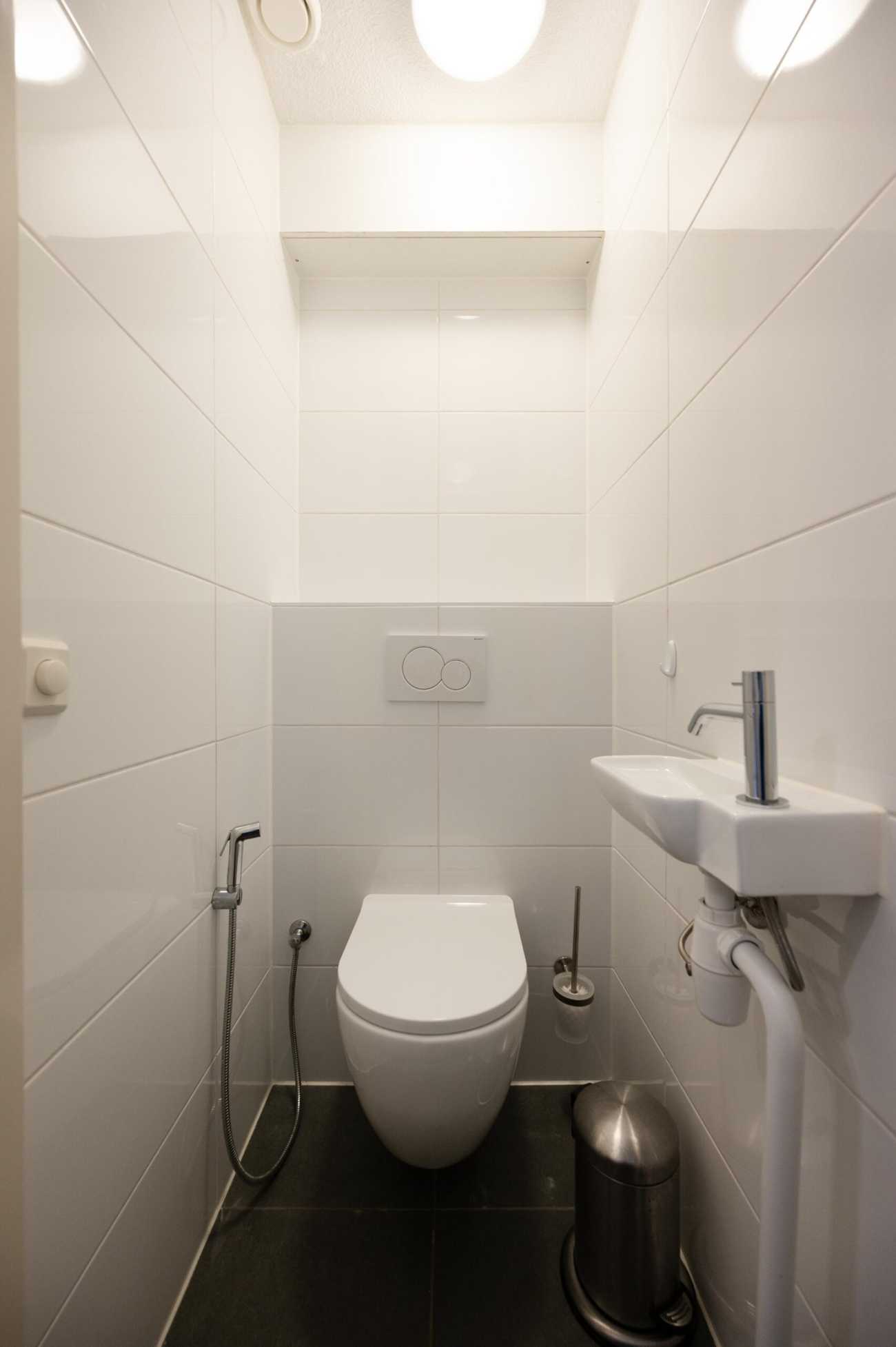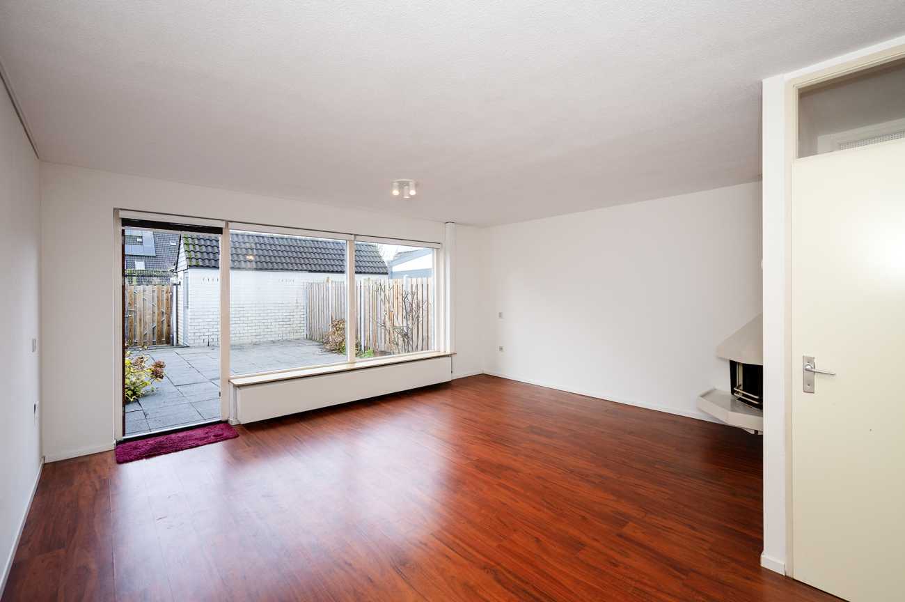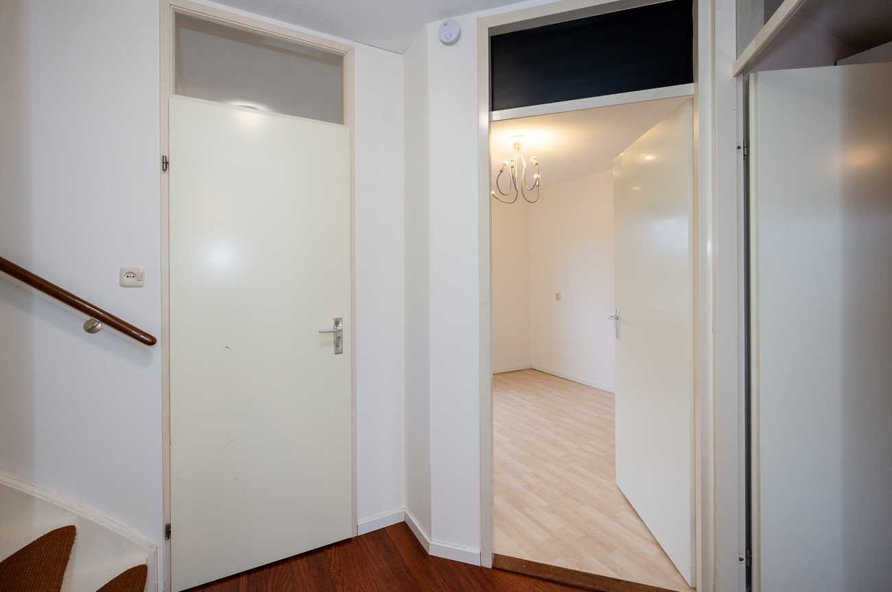 Via de entree komt u in de hal met meterkast en een modern toilet. Het moderne toilet is in 2024 gerenoveerd en volledig betegeld met een hangend closet, wastafel met fonteintje en een bidet. Vanuit de hal bereikt u de lichte woonkamer, die is voorzien van een nette laminaatvloer en veel daglicht. De woonkamer heeft een directe toegang tot de diepe achtertuin, waar u in alle rust kunt genieten van het groene uitzicht.