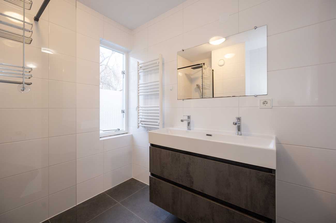 Op de eerste verdieping bevinden zich drie slaapkamers. Twee slaapkamers aan de achterzijde zijn uitgerust met dakramen die zorgen voor prettig daglicht. De moderne badkamer is volledig betegeld en beschikt over een dubbele wastafel, een ruime inloopdouche en een raam voor natuurlijke ventilatie en lichtinval. De badkamer is in 2024 gerenoveerd.