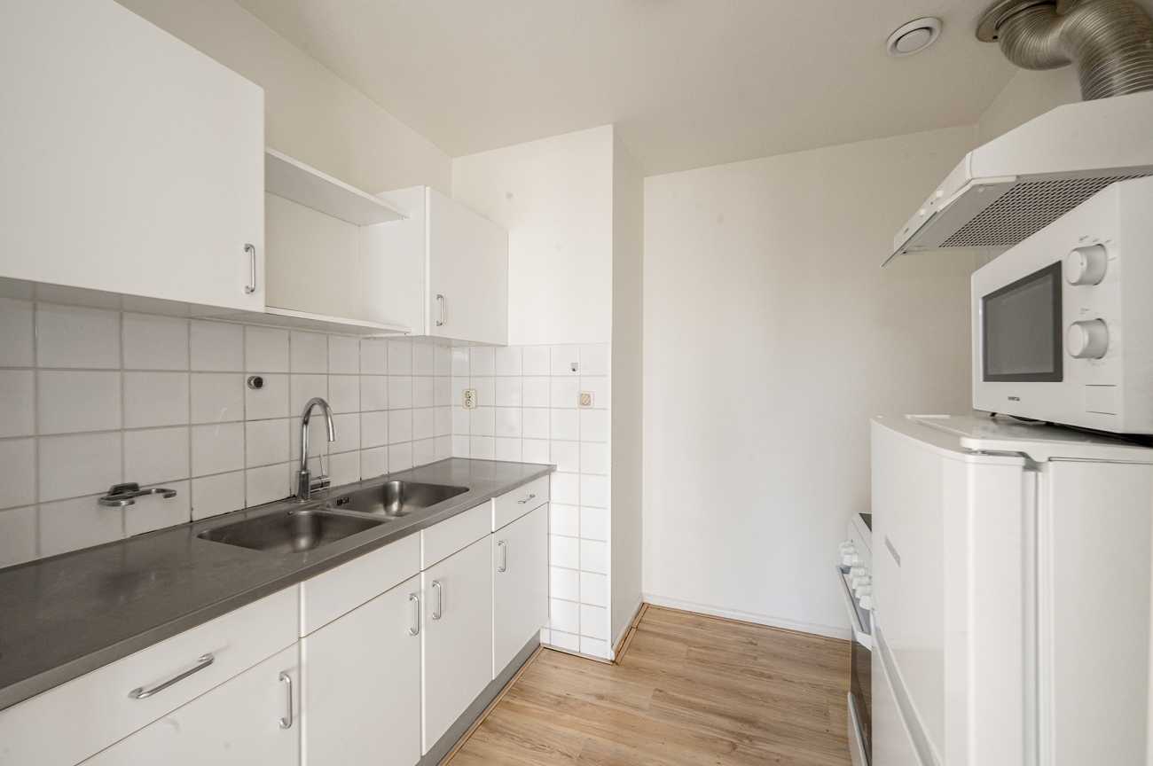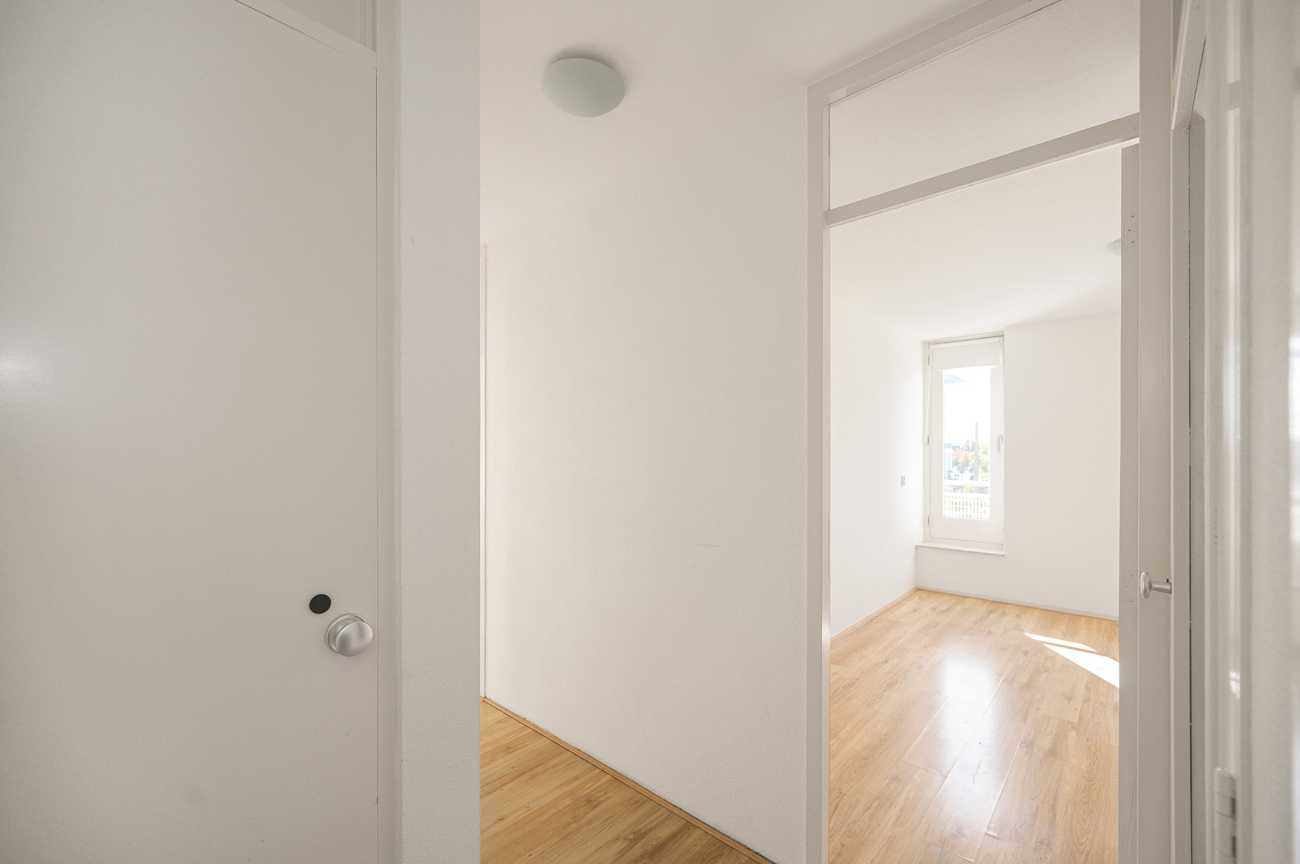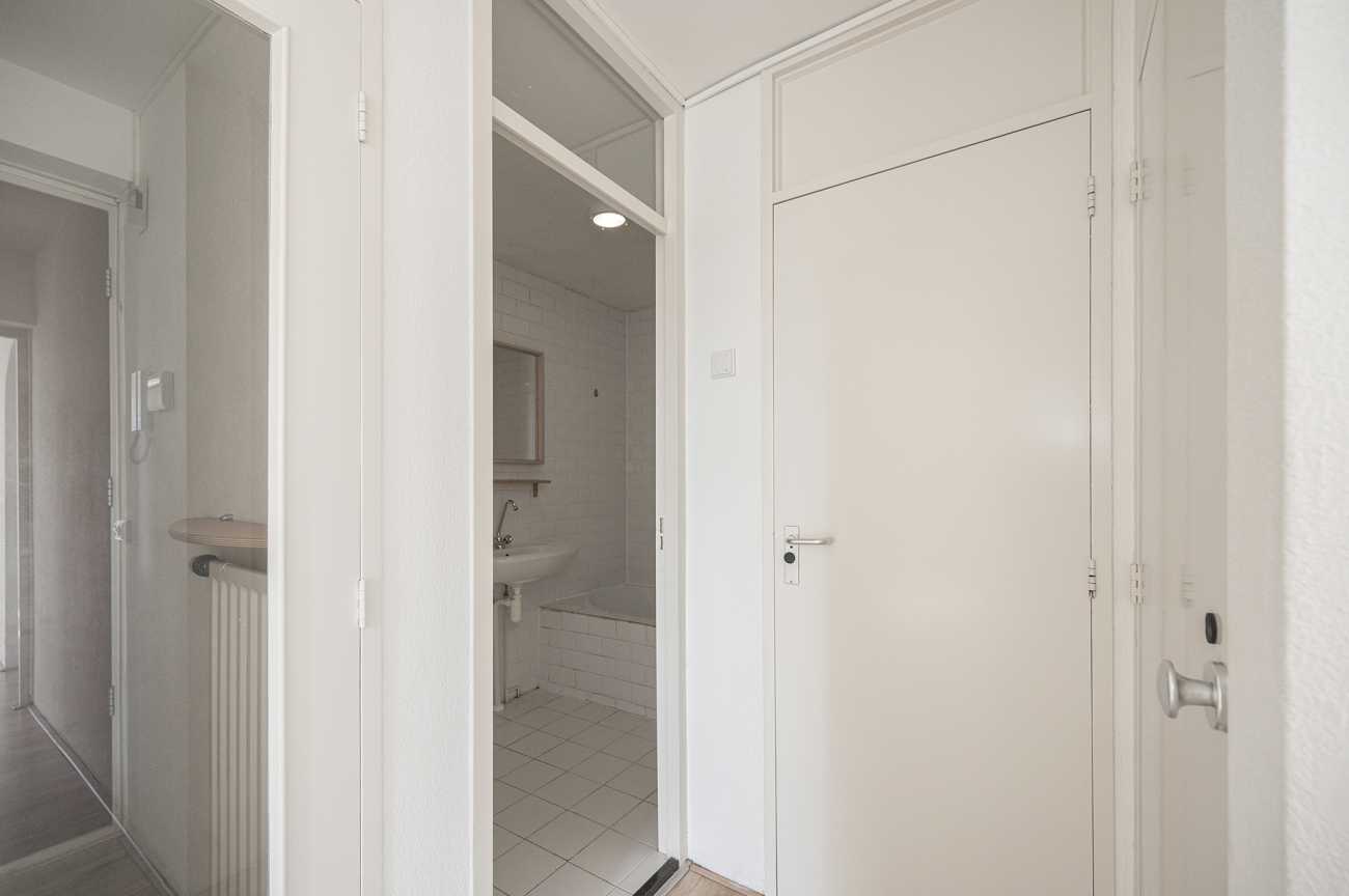Binnen in het appartement komt u via de hal in de zeer brede woonkamer met veel lichtinval en een op het Zuiden gelegen balkon. De woonkamer is voorzien van een laminaatvloer. De open keuken is eenvoudig en praktisch. Terug in de hal heeft u toegang tot twee slaapkamers, waarvan één ruime aan de voorzijde van het appartement. Direct naast de slaapkamer treft u de badkamer aan met wastafel, ligbad en de aansluitingen voor wasmachine en droger. Het toilet is separaat.