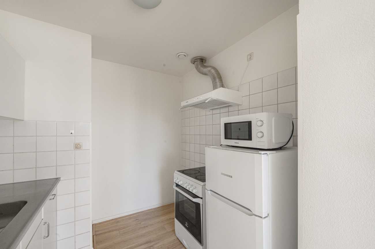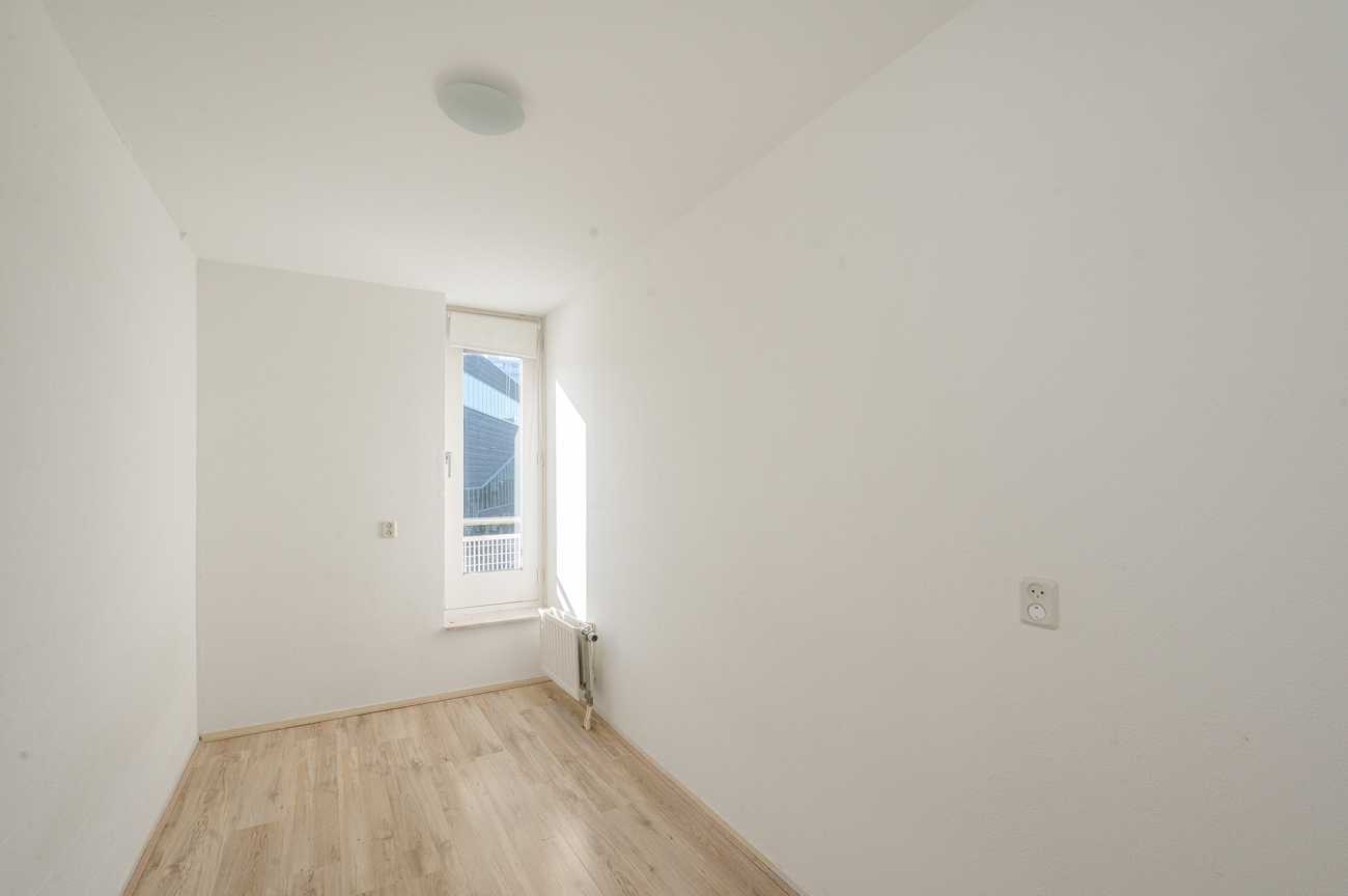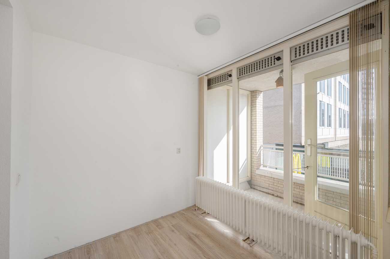 Binnen in het appartement komt u via de hal in de zeer brede woonkamer met veel lichtinval en een op het Zuiden gelegen balkon. De woonkamer is voorzien van een laminaatvloer. De open keuken is eenvoudig en praktisch. Terug in de hal heeft u toegang tot twee slaapkamers, waarvan één ruime aan de voorzijde van het appartement. Direct naast de slaapkamer treft u de badkamer aan met wastafel, ligbad en de aansluitingen voor wasmachine en droger. Het toilet is separaat.