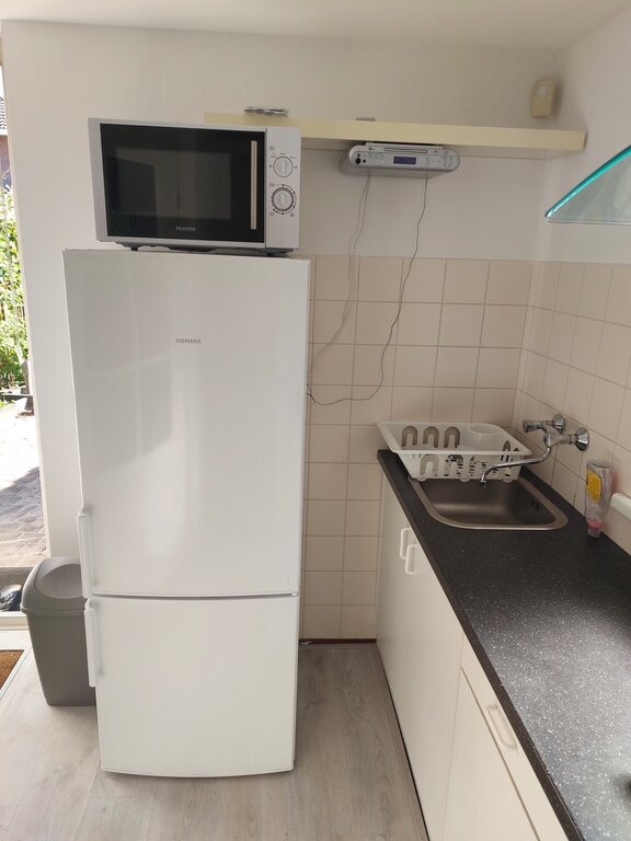 Via een zelfstandige entree komt u in de woonkamer, welke voorzien is van vloerbedekking. Het slaapgedeelte bevindt zich achter de woonkamer. Vanuit hier heeft u toegang tot de keuken en badkamer. De keuken is voorzien van een koelkast, kookplaat en afzuigkap. Hier is tevens ook de wasmachine gesitueerd. De badkamer heeft een zwevend toilet, douche en wastafel met spiegel.