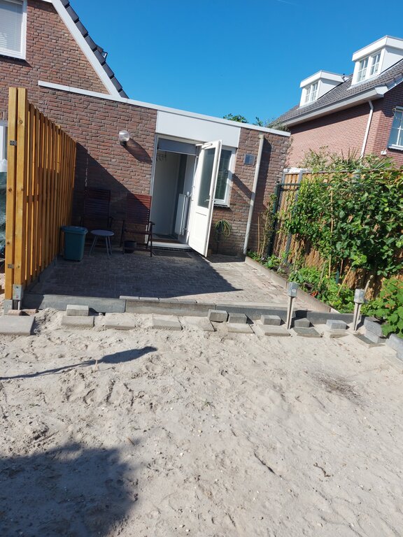 U heeft aan de voorzijde een gedeelte van het terras tot uw beschikking. Ook heeft de studio aan de achterzijde een betegelde patio waar u heerlijk buiten kunt zitten.