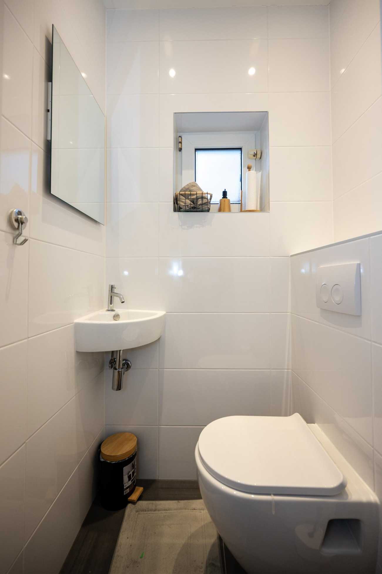 De entree leidt naar een hal met een onlangs gerenoveerd toilet. De keuken is volledig vernieuwd en voorzien van moderne apparatuur, waaronder een vaatwasser, koelkast, vriezer, oven, magnetron en inductiekookplaat.