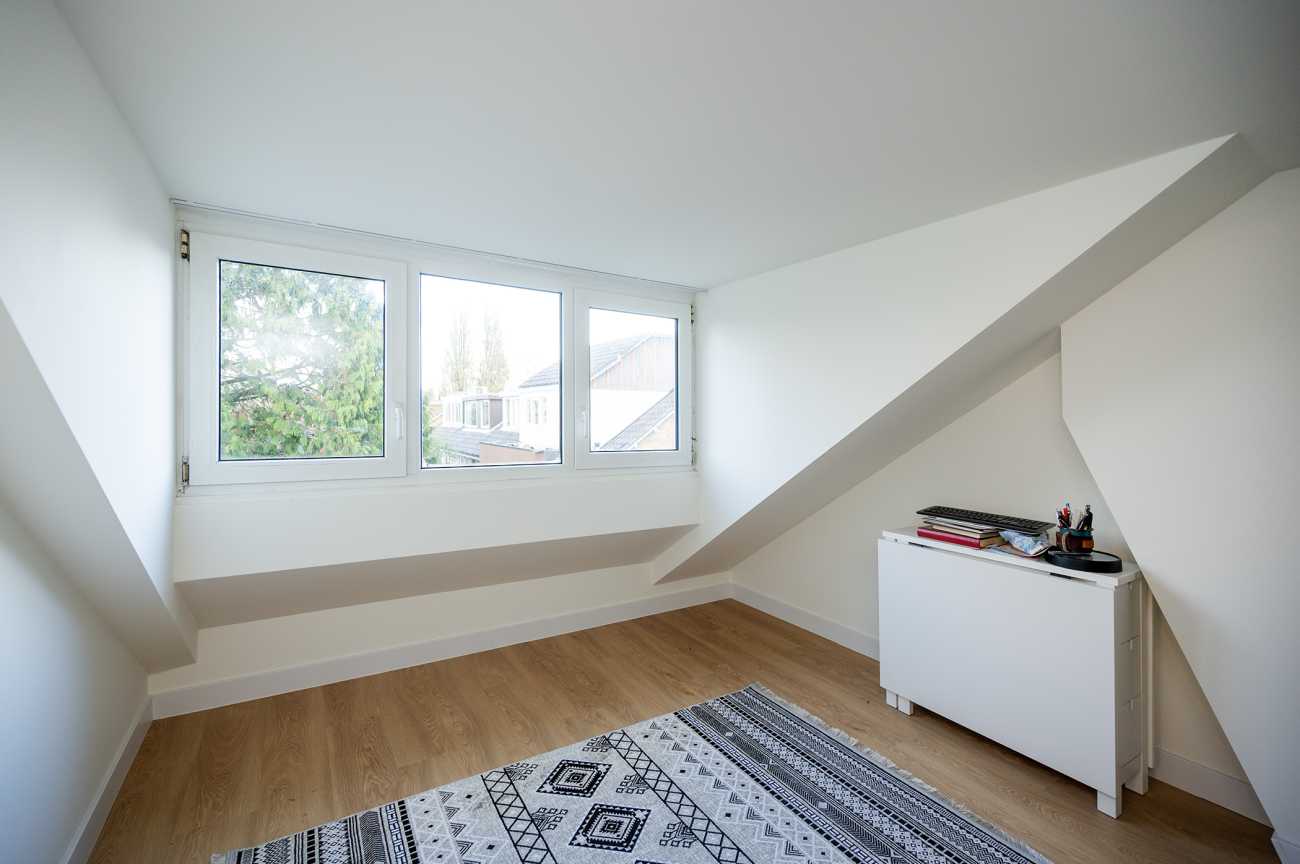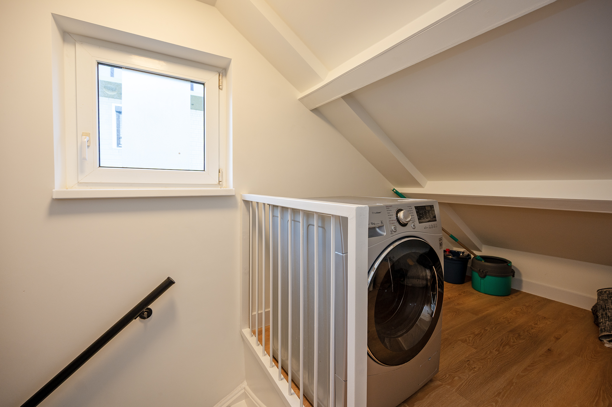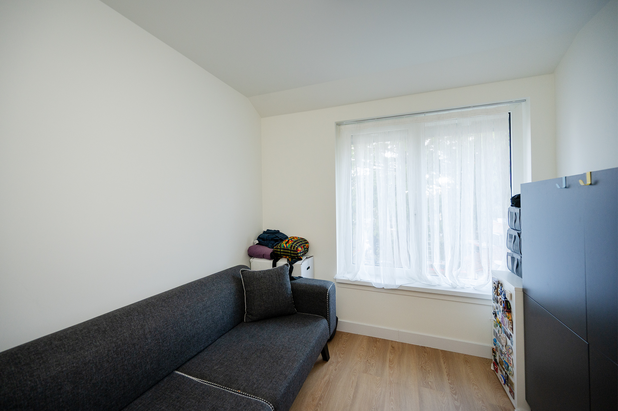 De zolderruimte kan gebruikt worden als slaapkamer of hobbyruimte. Tevens bevindt zich hier een extra wastafel.