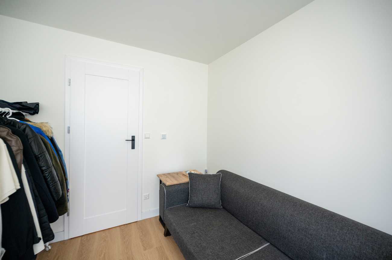 Hier bevinden zich drie slaapkamers en een moderne badkamer, volledig gerenoveerd en voorzien van een douche, toilet en wastafel met spiegel.