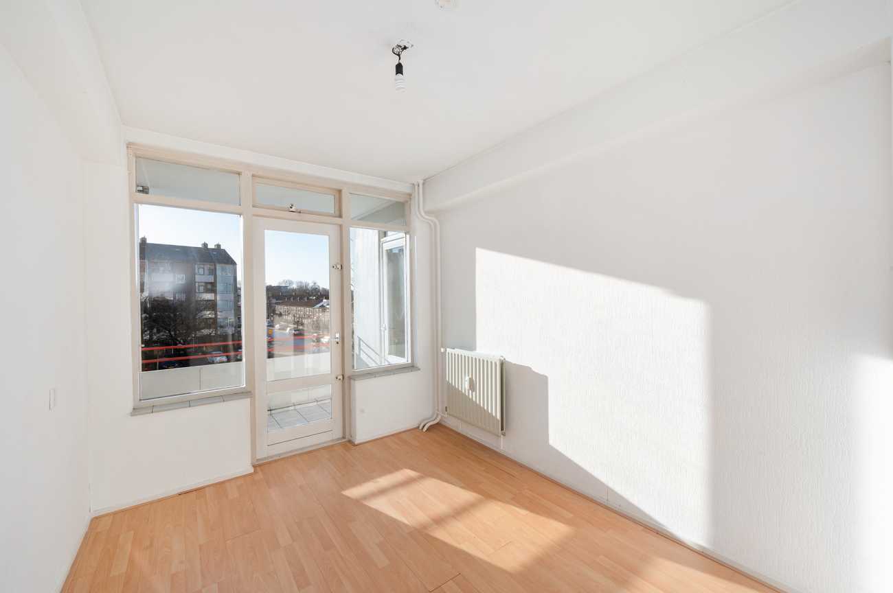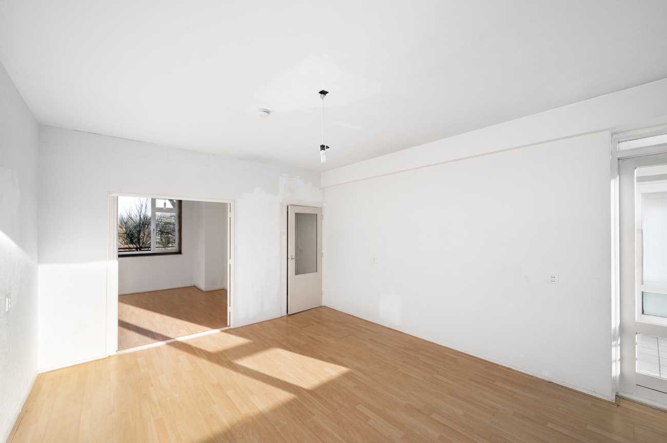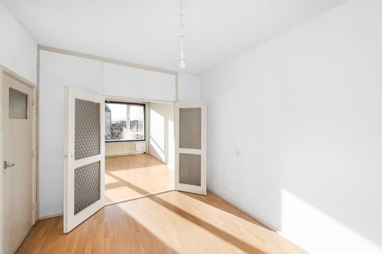 Het appartement is gelegen op de tweede verdieping en is bereikbaar via trap of lift. De woning beschikt over twee officiële slaapkamers van ruim formaat. Daarnaast is er een derde kamer en suite met de woonkamer, die zich uitstekend leent als extra slaapkamer, werkkamer of eetkamer. De woning is bij uitstek geschikt om volledig naar eigen wens te verbouwen. De badkamer is momenteel eenvoudig uitgevoerd met een douche en wastafel. De keuken kan geheel naar eigen smaak en indeling worden gerealiseerd. Alle slaapkamers zijn ruim bemeten en het volledige appartement is recent opnieuw wit geschilderd, wat zorgt voor een frisse en neutrale basis.