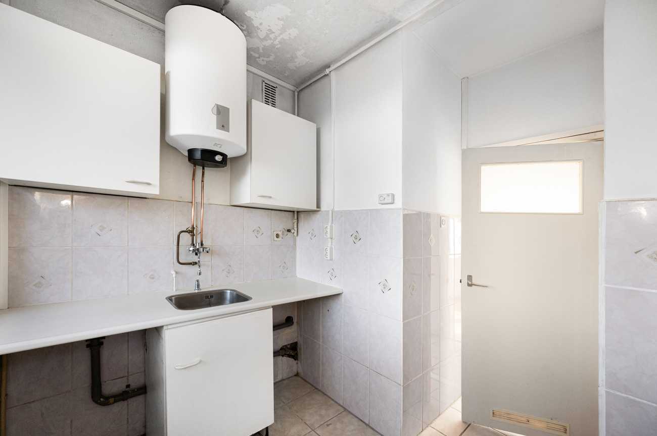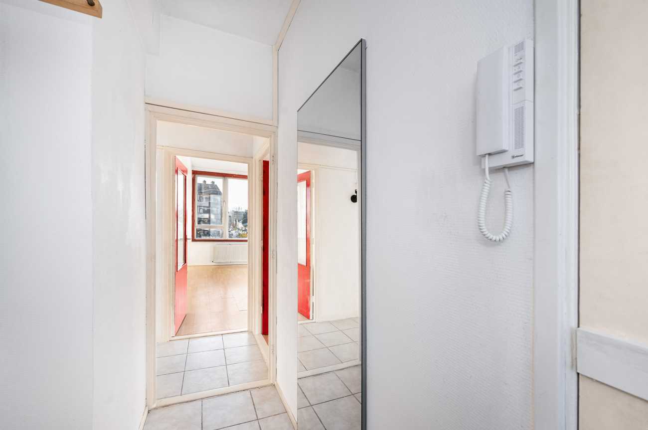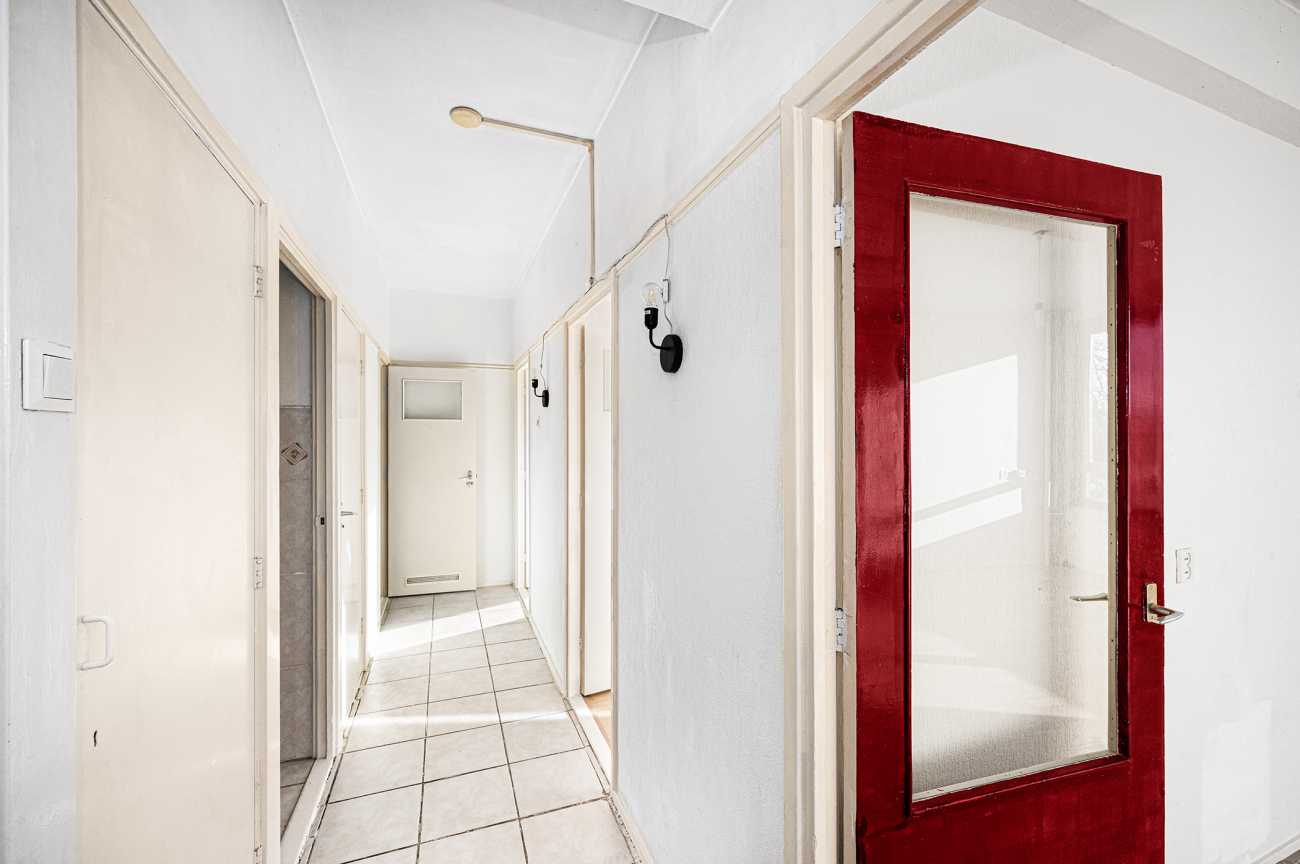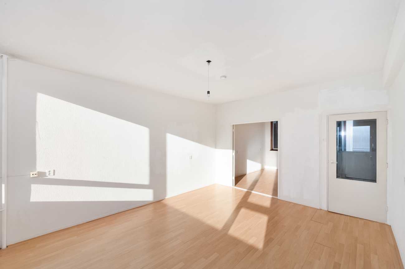 Het appartement is gelegen op de tweede verdieping en is bereikbaar via trap of lift. De woning beschikt over twee officiële slaapkamers van ruim formaat. Daarnaast is er een derde kamer en suite met de woonkamer, die zich uitstekend leent als extra slaapkamer, werkkamer of eetkamer. De woning is bij uitstek geschikt om volledig naar eigen wens te verbouwen. De badkamer is momenteel eenvoudig uitgevoerd met een douche en wastafel. De keuken kan geheel naar eigen smaak en indeling worden gerealiseerd. Alle slaapkamers zijn ruim bemeten en het volledige appartement is recent opnieuw wit geschilderd, wat zorgt voor een frisse en neutrale basis.