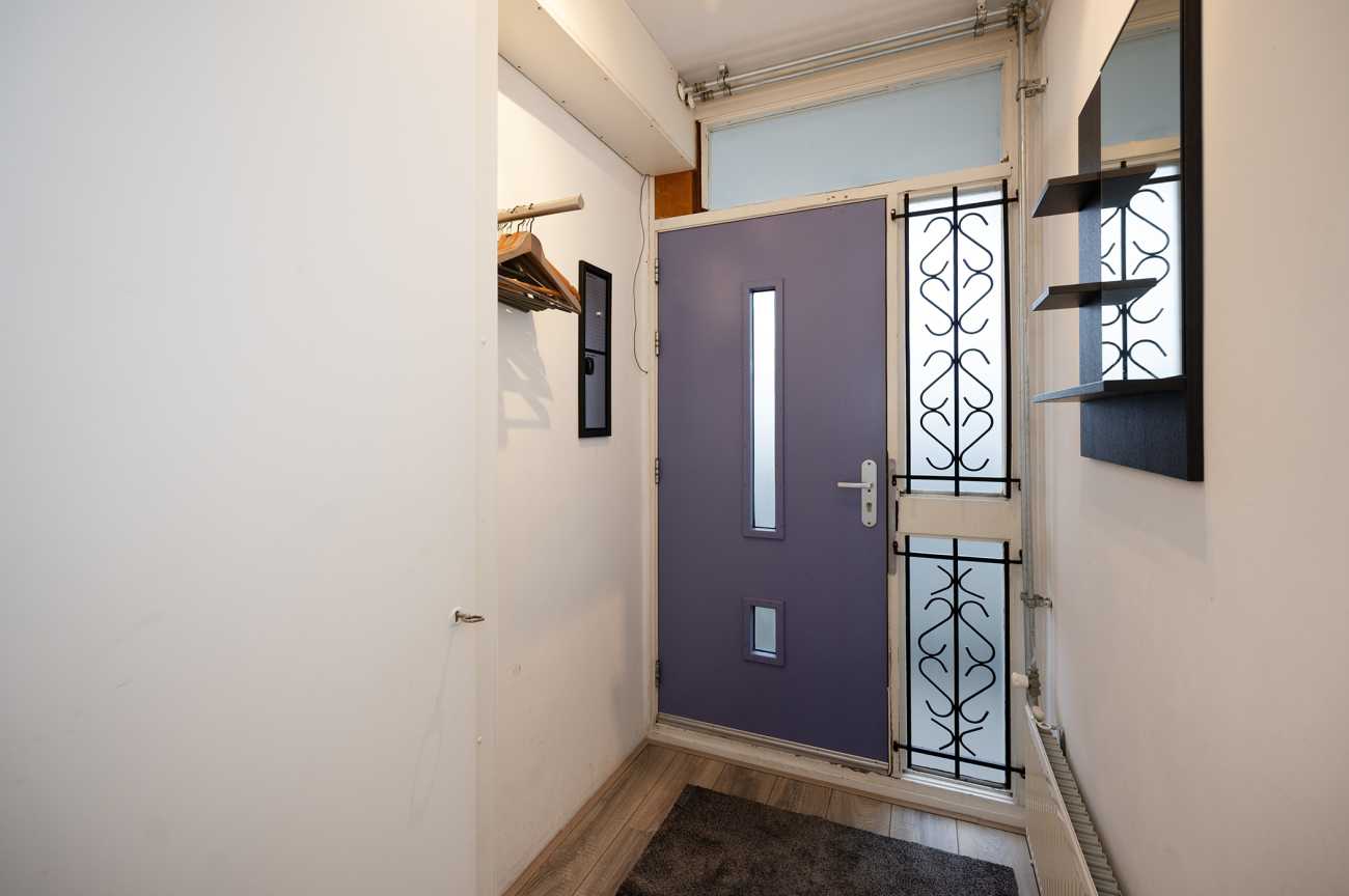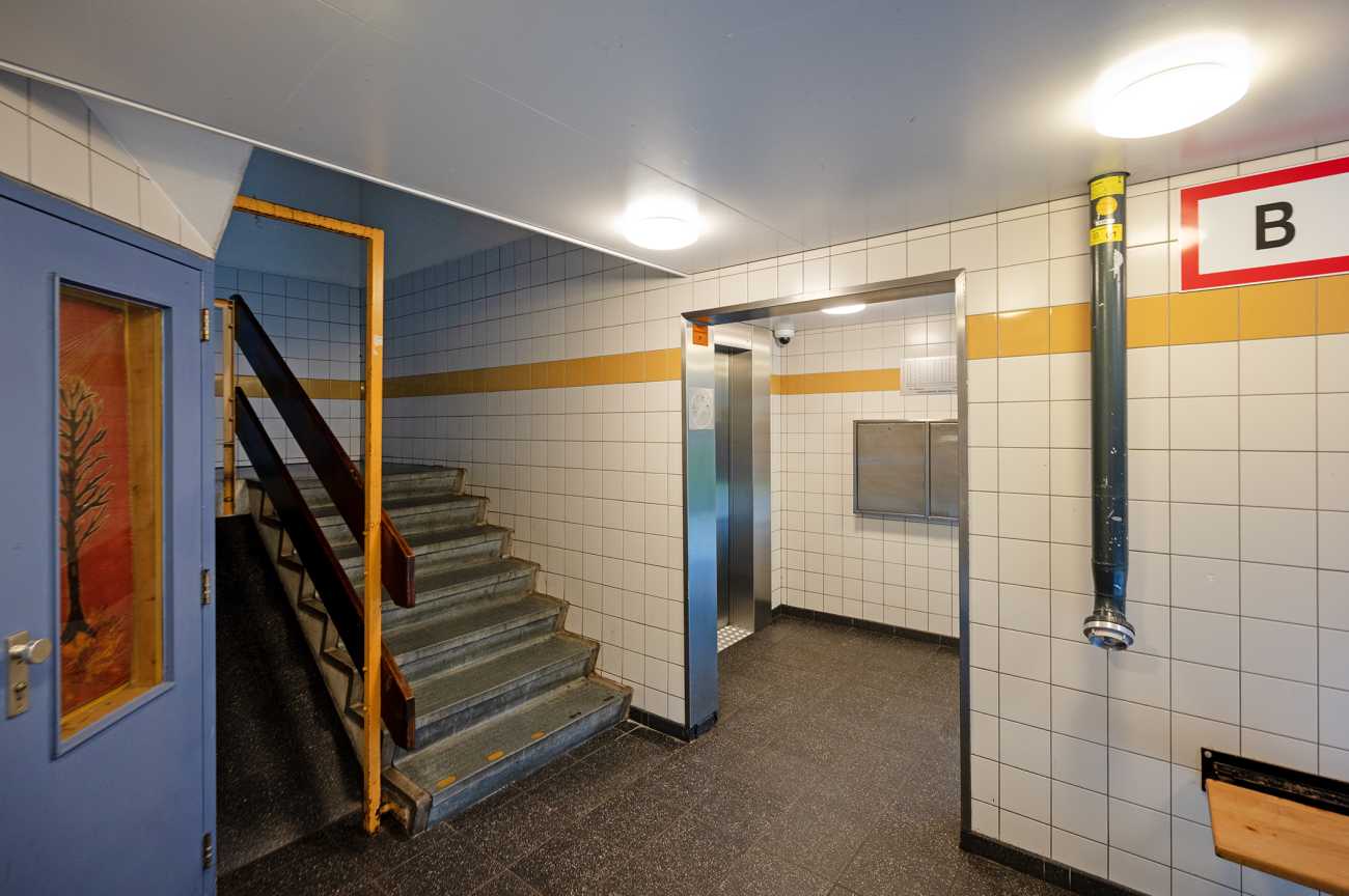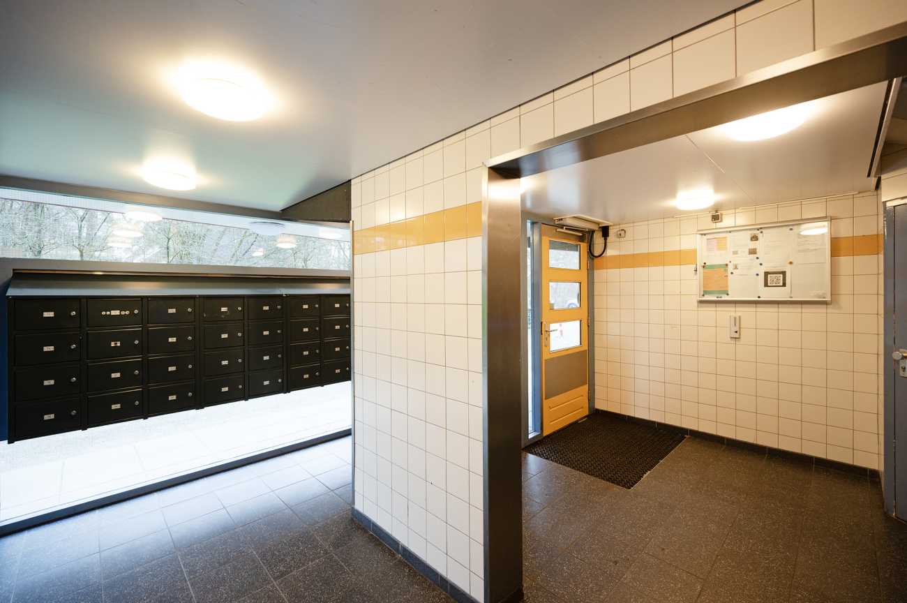 Afgesloten gezamenlijke entree met brievenbussen en bellentableau. Vanuit de centrale hal zijn de lift en het trappenhuis bereikbaar.