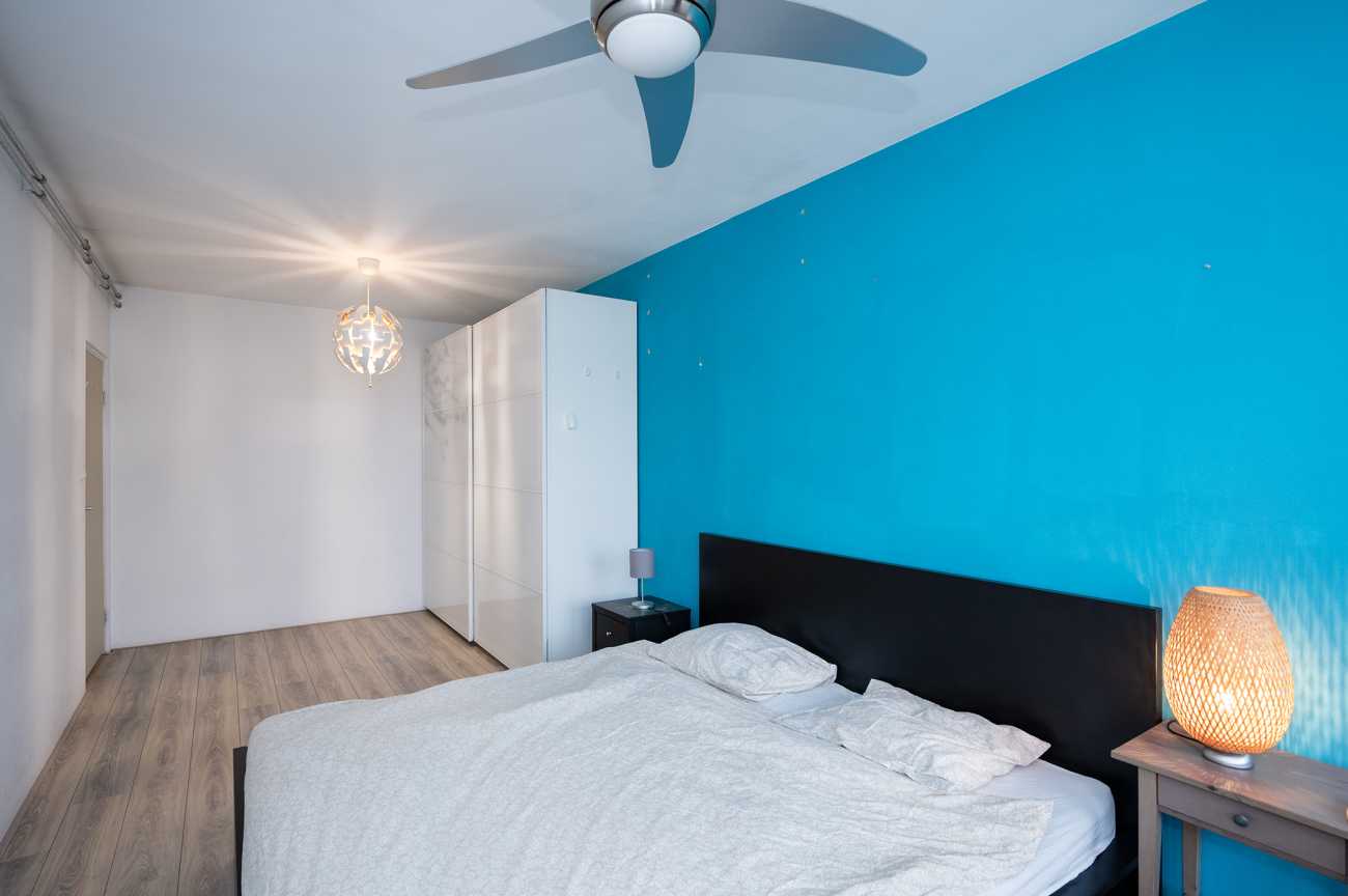 Het appartement beschikt over twee slaapkamers. De achterste slaapkamer heeft directe toegang tot het balkon, wat zorgt voor een fijne verbinding tussen binnen en buiten.