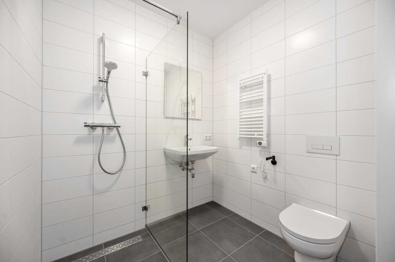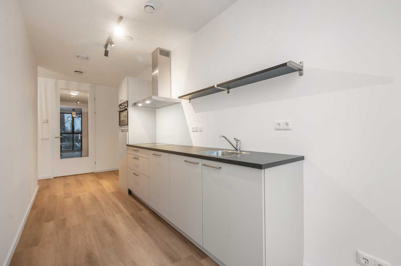 De open keuken is volledig ingericht met inbouwapparatuur (koelkast, kookplaat, combi-oven en vaatwasser). De badkamer is voorzien van een ruime inloopdouche, wastafelmeubel en modern sanitair.