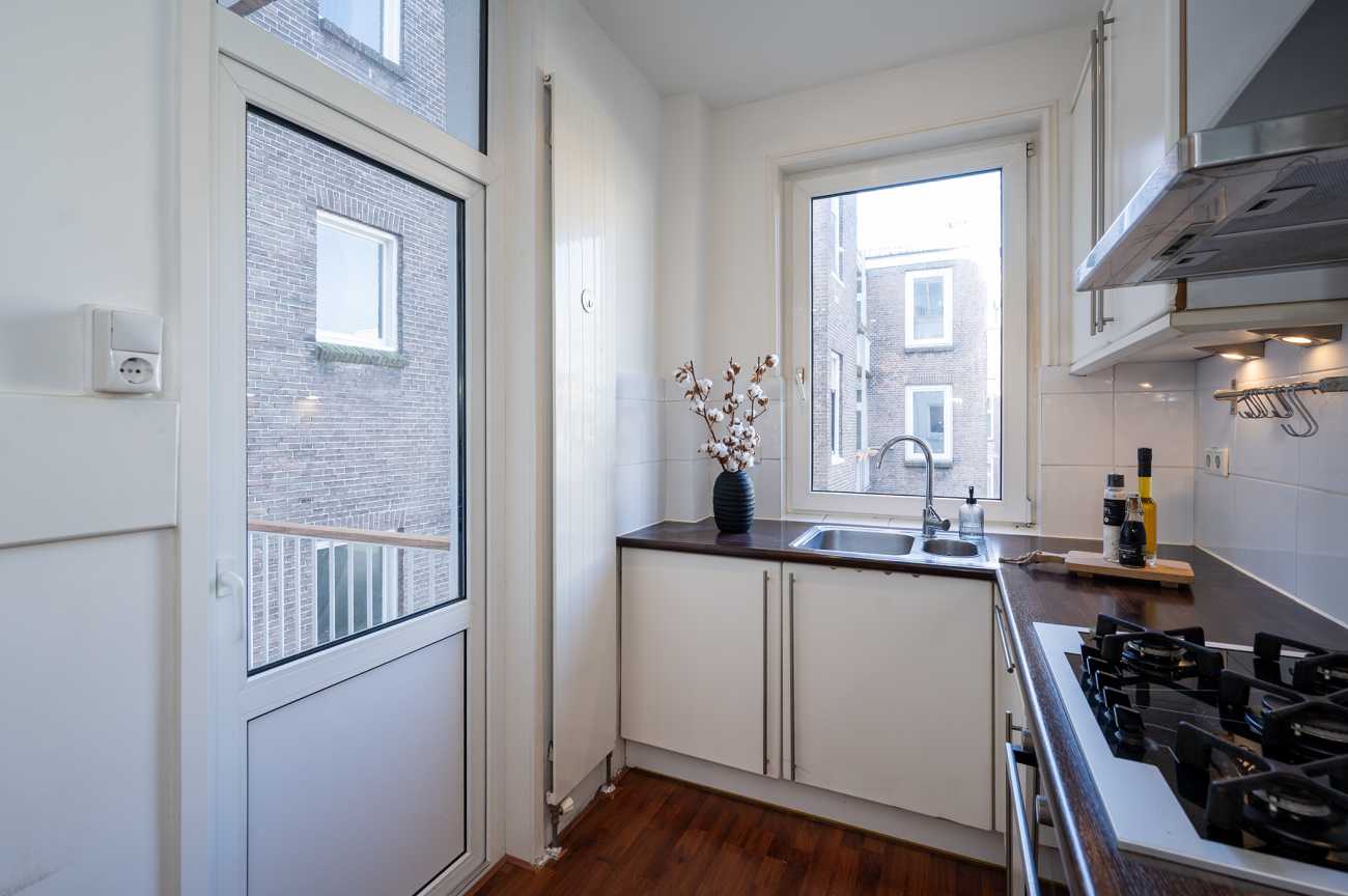 De woning ligt in de populaire Frederik Hendrikbuurt. Steek je de straat over, dan sta je direct midden in de Jordaan met haar vele winkels, gezellige restaurants en cafés. Rond het levendige Hugo de Grootplein vind je alle dagelijkse voorzieningen zoals supermarkten, speciaalzaken en horeca. Ook de Noordermarkt, het Marnixbad, de Westerstraat en De Negen Straatjes bevinden zich op korte loopafstand.