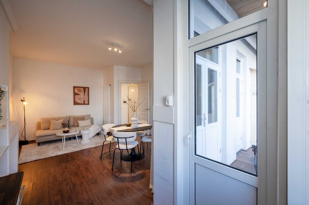 Vanuit de woonkamer geven openslaande deuren toegang tot het balkon aan de achterzijde.