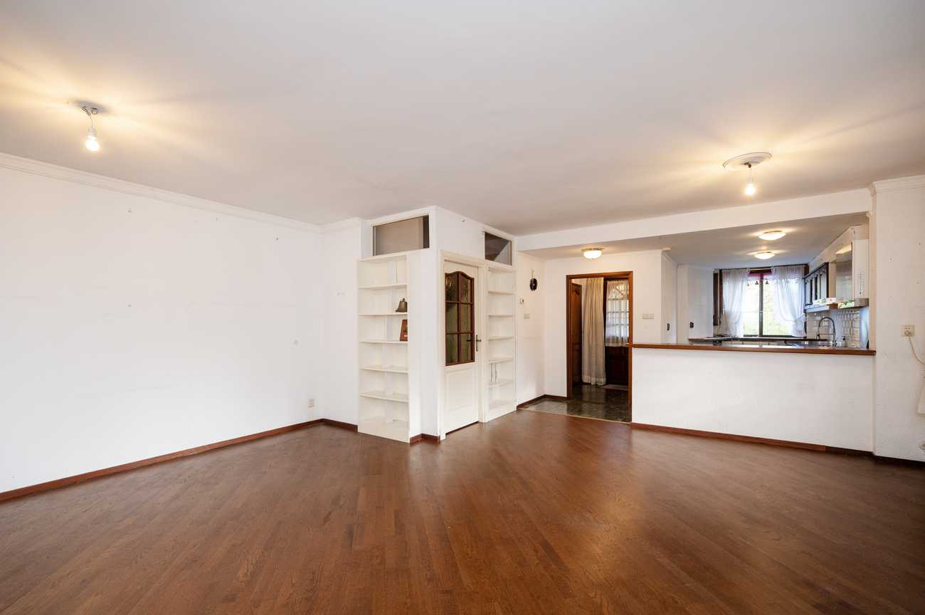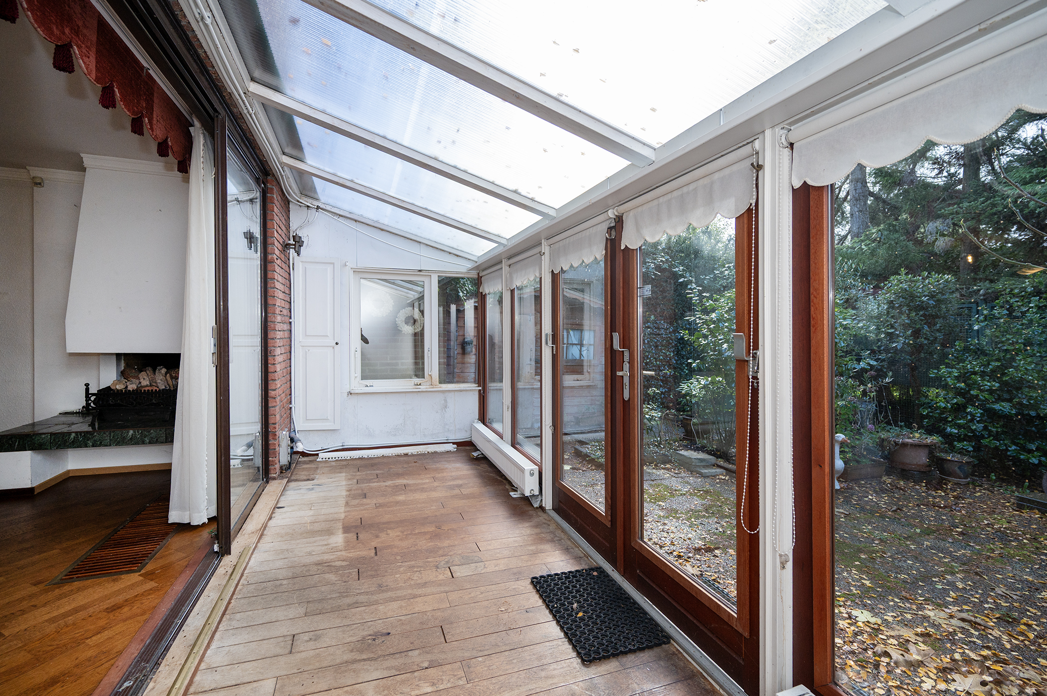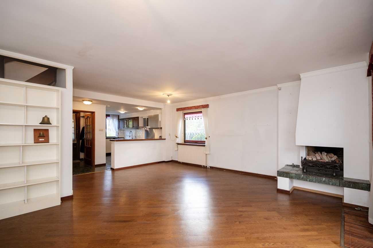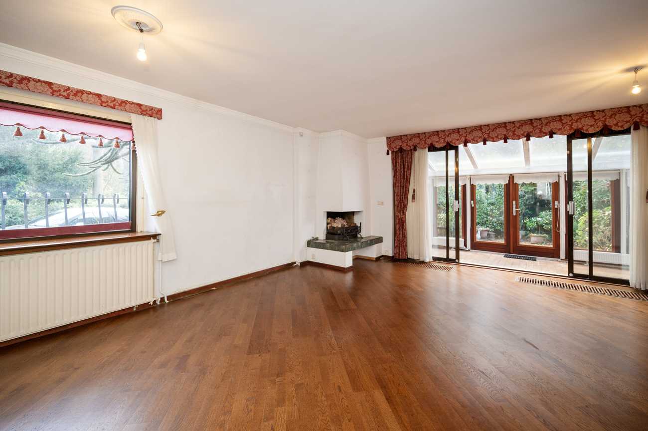Entree, hal met toilet en inpandige berging met de cv-ketel. De woonkamer is voorzien van een open haard en schuifpui die toegang geeft tot de Serre. Vanuit de serre is er toegang tot de tuin gelegen op het Westen.