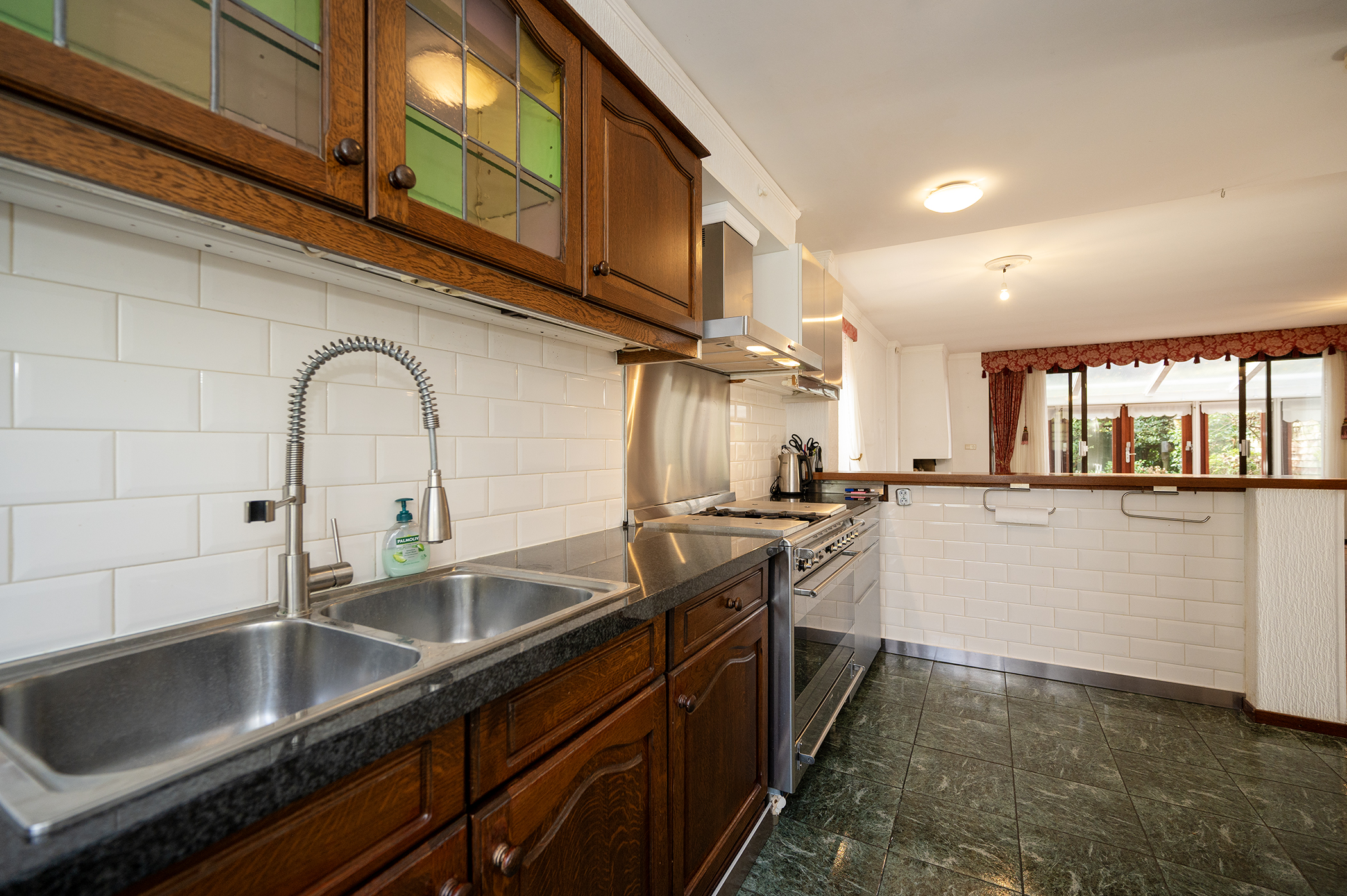 Aan de voorzijde is de open keuken.