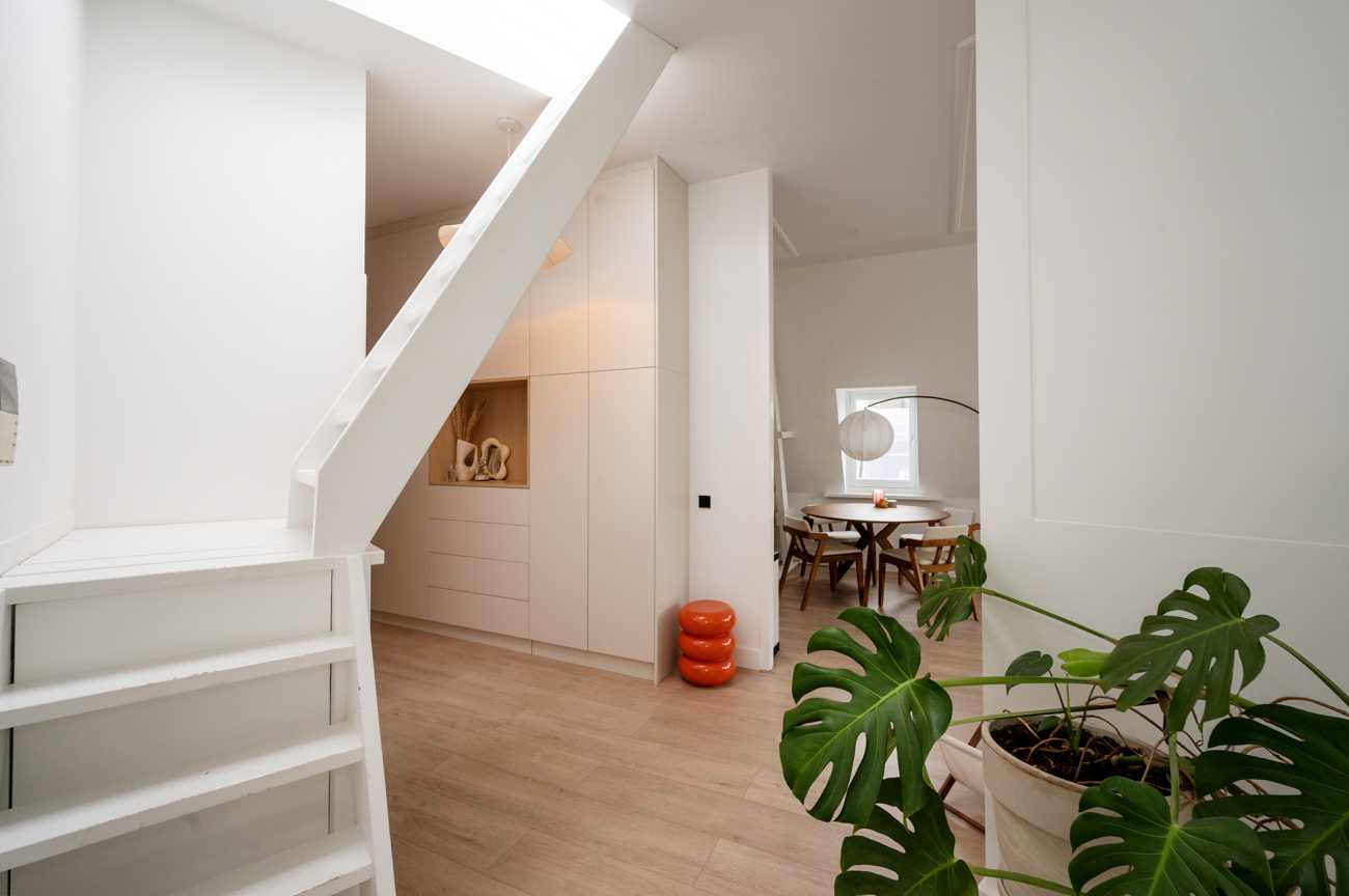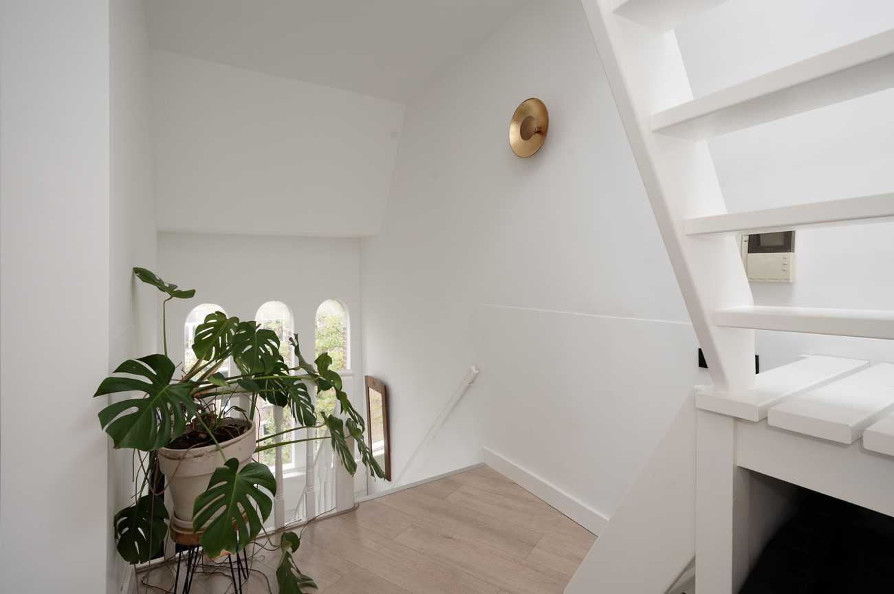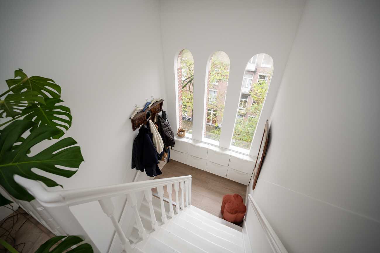 Via een eigen trapopgang bereik je de entree van het appartement. De trap omhoog wordt fraai verlicht door karakteristieke ramen met een klassieke uitstraling.