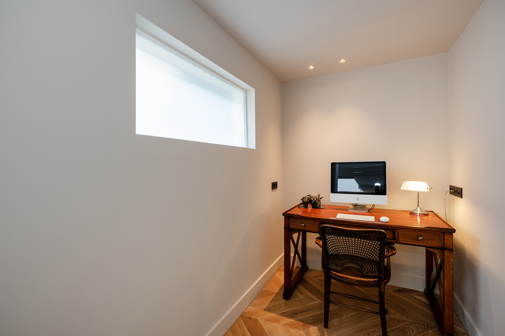 Via de woonkamer kom je terecht in het knus ingerichte kantoor.