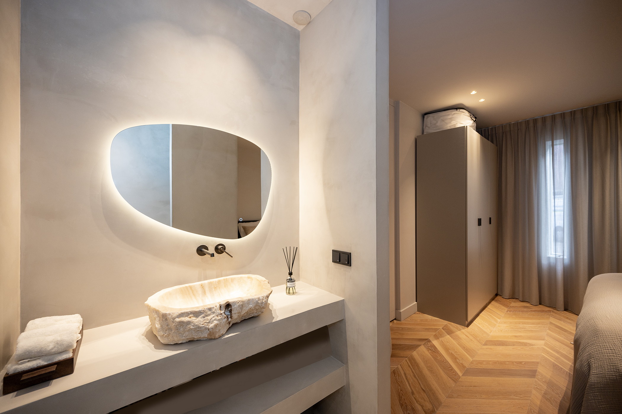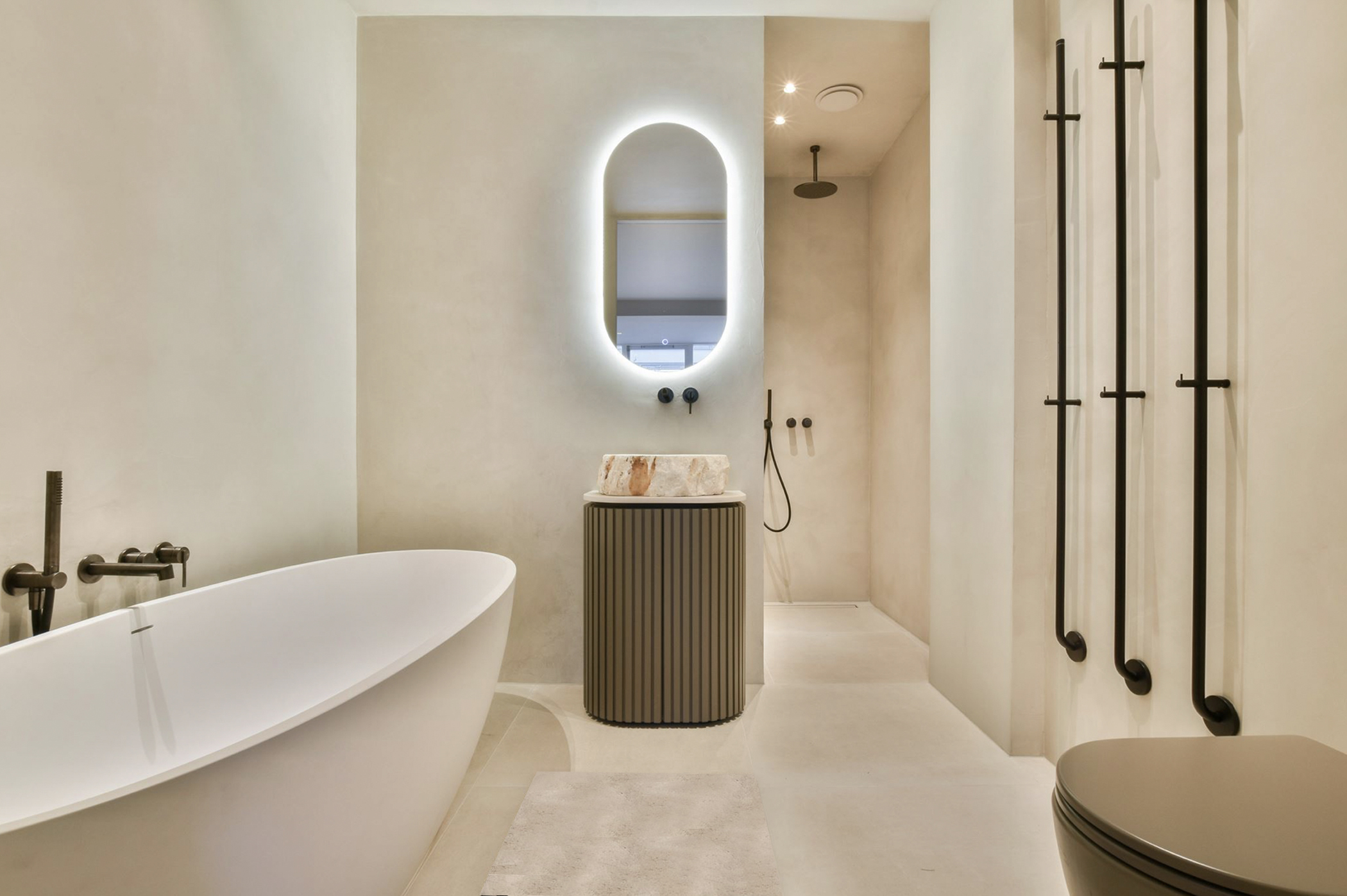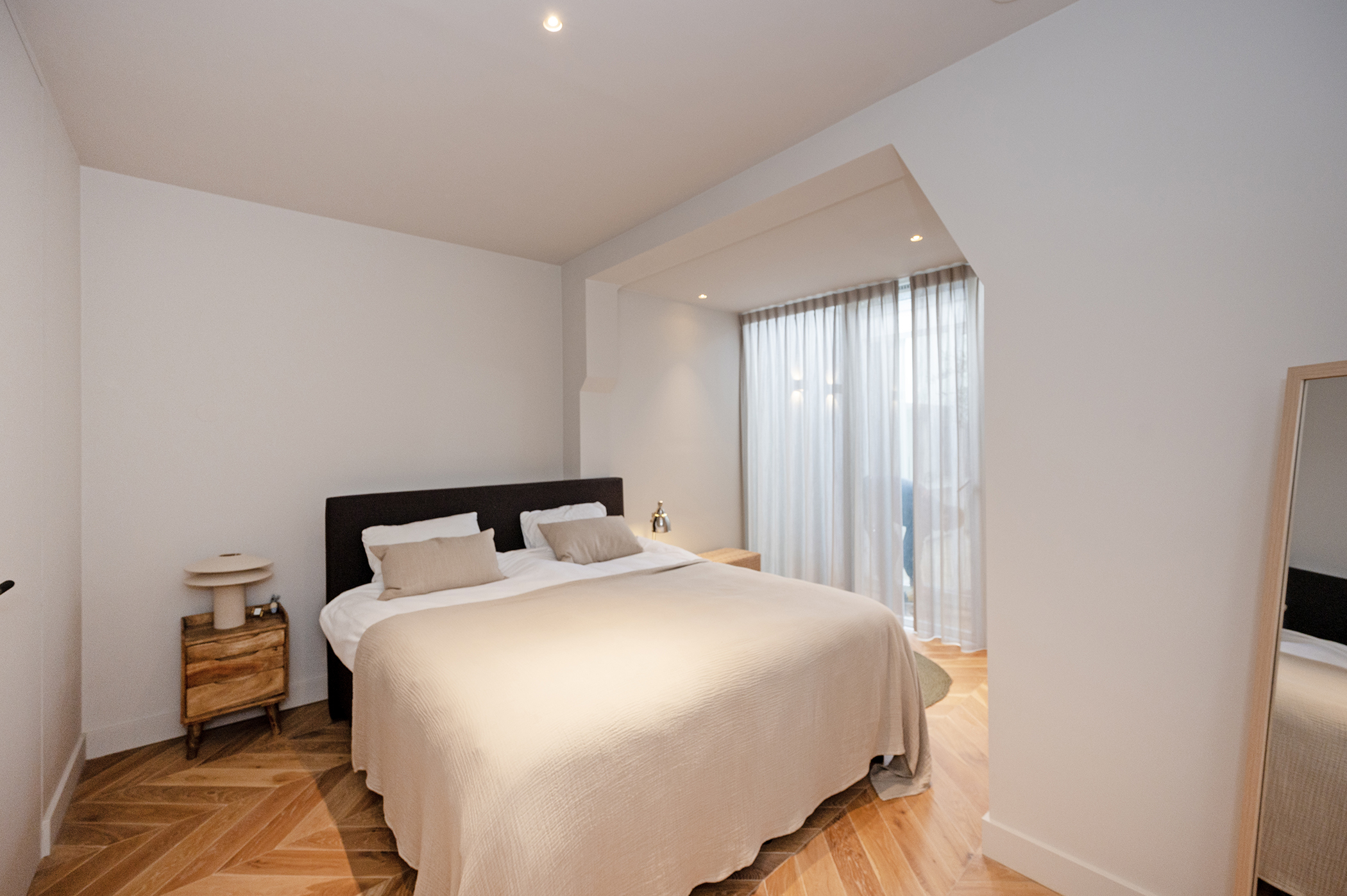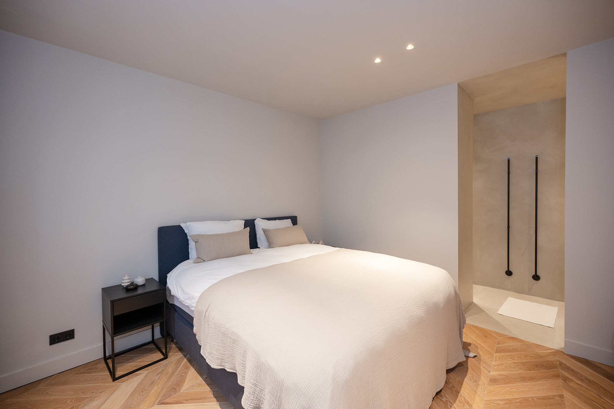 Er zijn twee ruime slaapkamers met elk een volledig ingerichte badkamer. Via de master-bedroom kijk je uit op de prachtige binnentuin. De badkamer behorend bij deze slaapkamer is voorzien van een heerlijk vrijstaand ligbad, wc, wastafel en inloop(regen)douche.