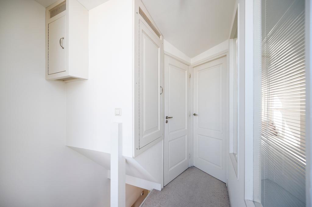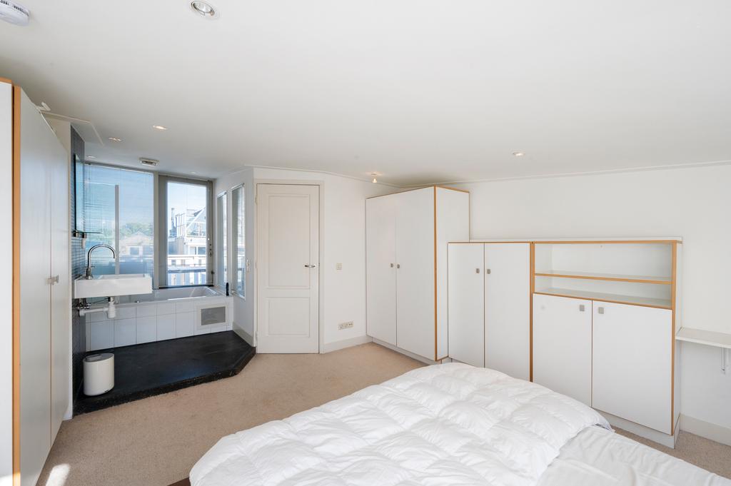 overloop, kast met wasmachine, toilet, ruime slaapkamer met tweepersoonsbed en een open badkamer. De badkamer is voorzien van een ligbad met douche en een wastafel. Aan beide kanten van de slaapkamer is er toegang tot een riant dakterras, ligging op het zuiden.
